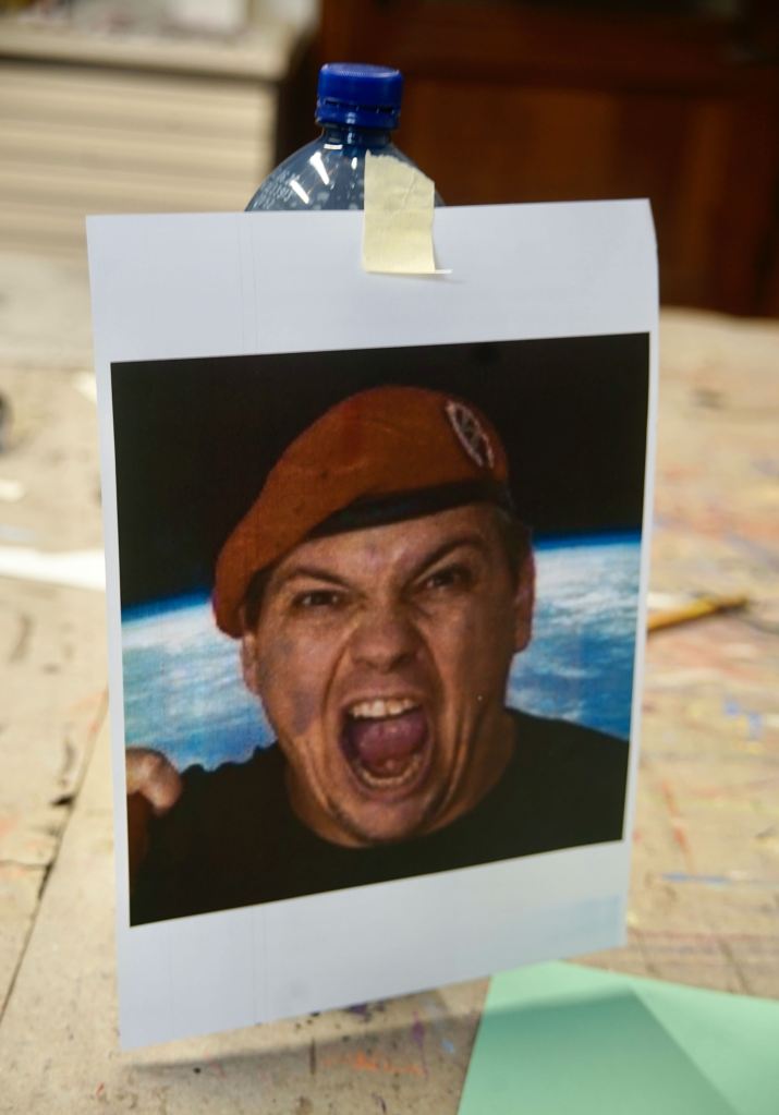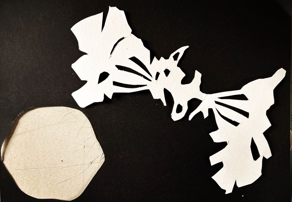 Buchalov sagt über sein Foto: „ Der Löwe besitzt ein Objektiv, das er „das Biest“ nennt. Es kann auf eine ganz besondere Art und Weise mit Lichtreflexen umgehen und erzeugt Effekte, die, so der Löwe, auch mit KI wohl nicht erreichbar sind. Ein solches Objektiv besitzt Buchalov nicht. Er hat sich daher auf das konzentriert, was er besitzt und was er mit seinen Mitteln kann. Er hat den linken Teilbereich des Bildes als Ausgang für sein Photo genommen und diesen mithilfe von Papier, Schneidemesser und Kleber nachgebaut, auf seine Fotobühne gestellt und mit künstlichem Licht fotografiert. Nachbearbeitet wurde nur minimal: der Kontrast, die Helligkeit und der Bildausschnitt. Die fotografische Herausforderung bestand darin, der leuchtenden Spannung des Vorgängerbildes etwas entgegenzusetzen und es doch irgendwie fortzuschreiben – es war schwierig, schwierig.”