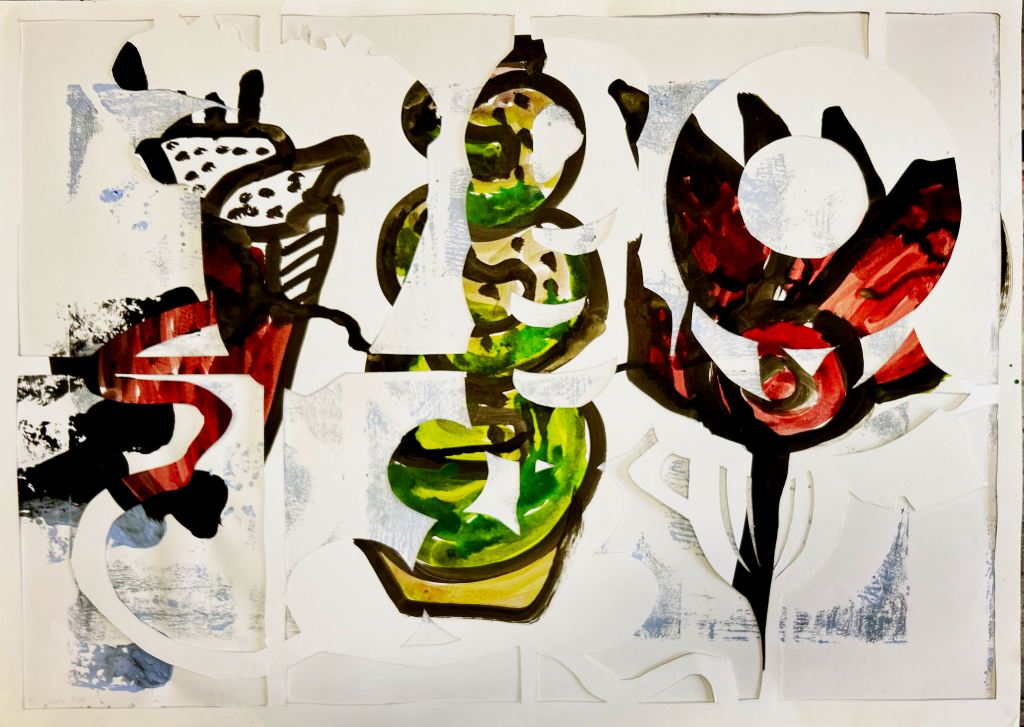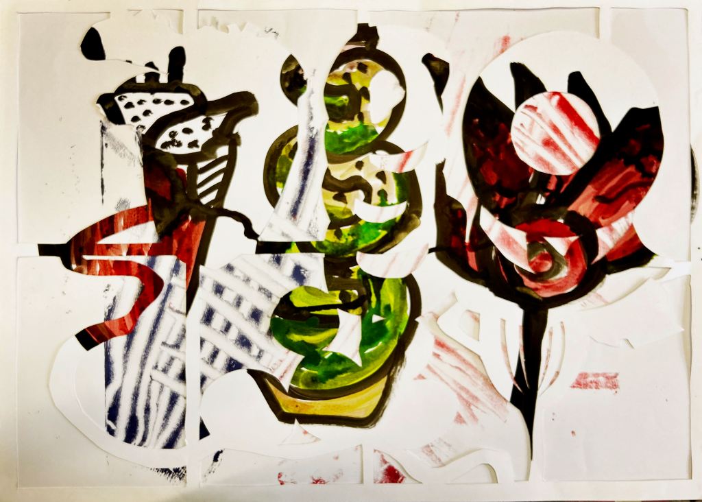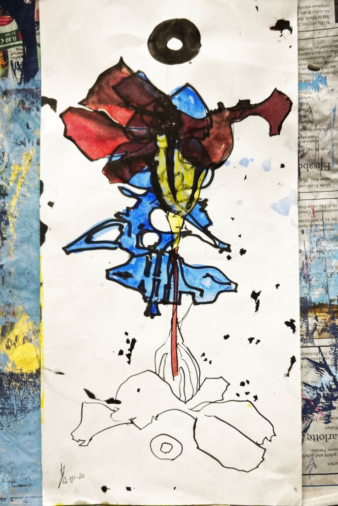Wenn man ein Bild fortführt, bewegt man sich im Spannungsfeld von „Motive aufgreifen“ oder eine Form oder eine Farbe oder die Komposition. Und man versucht dann „ein neues, eigenständiges Element“ einzuführen. So geht es mir jedenfalls. Bin gespannt, wie das der Löwe löst.“.