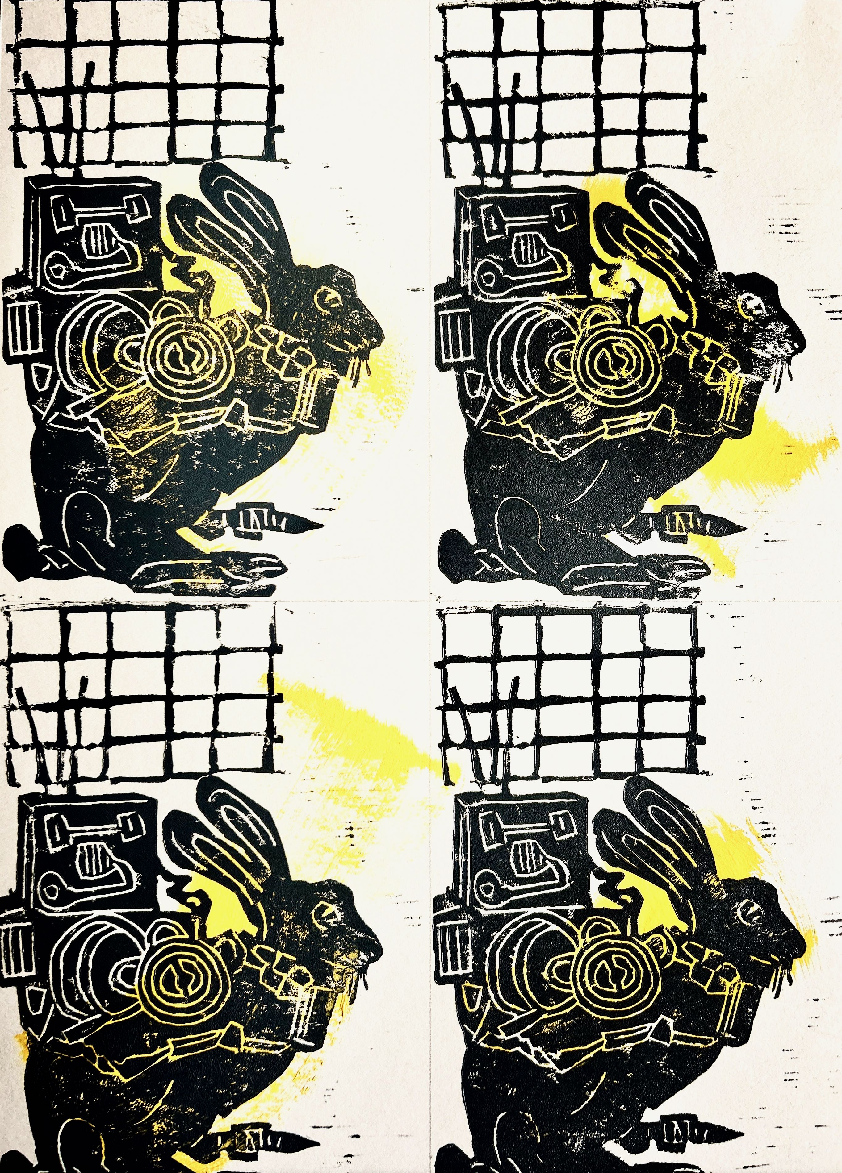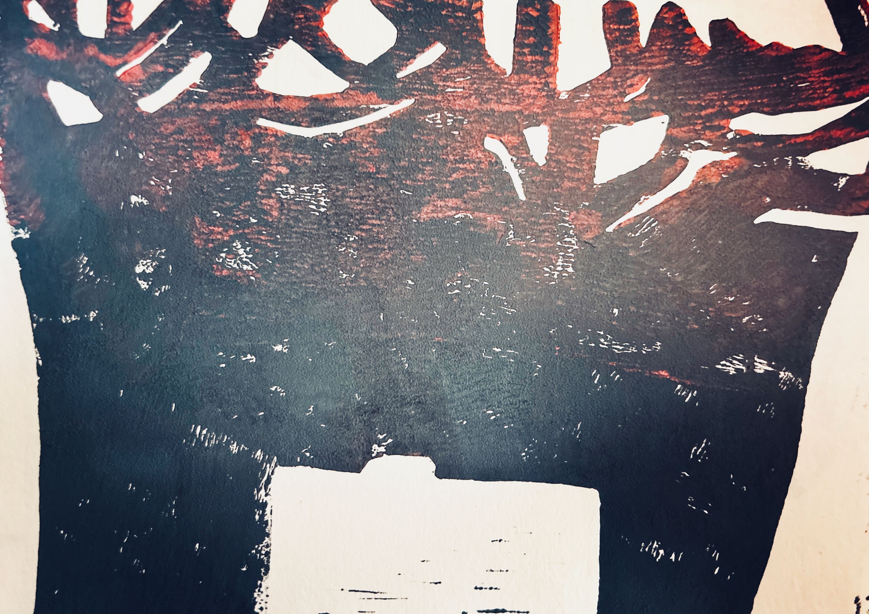 Buchalov sagt über sein Nachfolge-Foto: „Das „Emmer-Foto“ des Löwen führte mich an einen Endpunkt. Wie soll man ein paar Körner, die als Urgetreide gelten, bildnerisch fortführen. Da war kein Anpack, kein Impuls, nichts. Dann sagte M., dass ich doch unser Vogelfutter als Motiv nehmen könne. Und zusätzlich kam da das bestellte Buch über die Mythen bei Beuys herein, in dem ich „die liegende Frau mit dem Samen“ sah. Da hatte ich dann zwei Motive, die passten. Auf der Terrasse habe ich die Vogelfutterstation fotografiert und auf einem Resteblatt habe ich eine Liegende gezeichnet und mit Sonnenblumenkernen bestreut. Bei Beuys sind ja Samen und Keimlinge zentral, denn sie sind für ihn Ausgangspunkt für neues Leben, für Gestaltwerdung und Erneuerung. Das gefällt mir.“