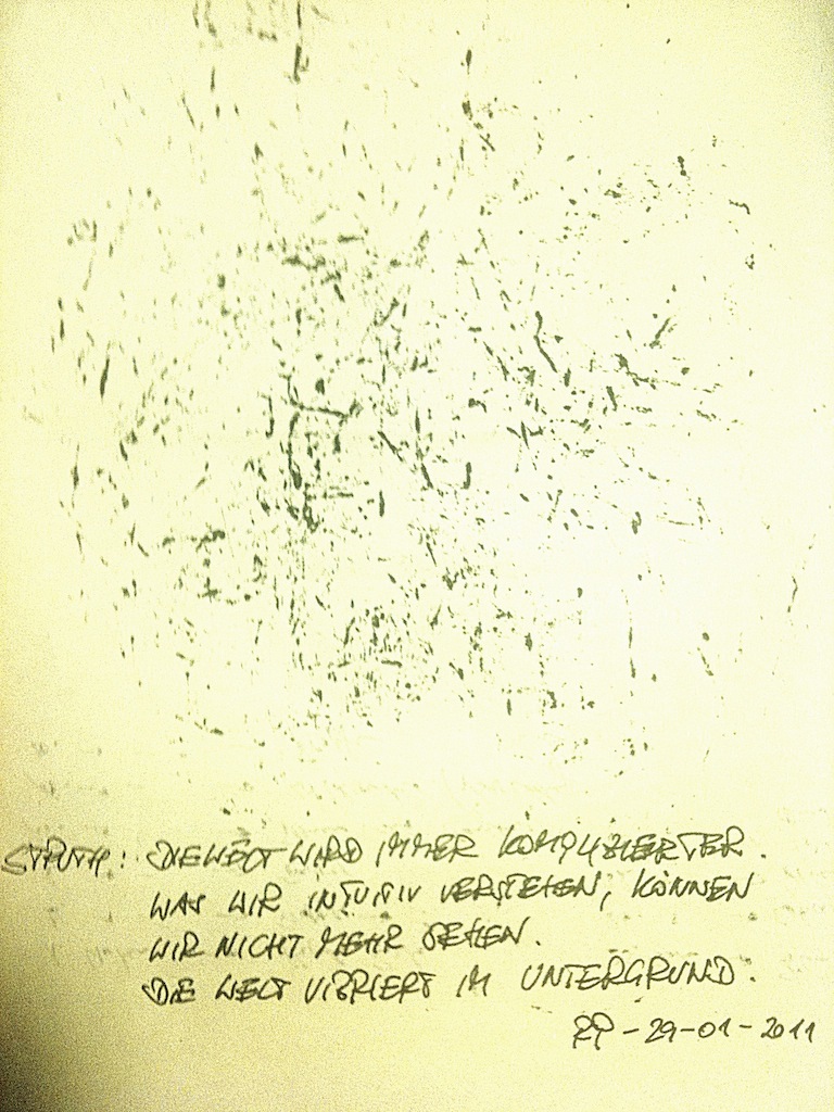 Wenn ich in meiner Garage sitze vibriert die Maschine, an der ich baue. Vor der Tür steht die Welt und oft weiß ich nicht, ob es die Maschine ist oder die Welt, welche vibriert.
