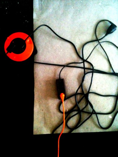 Neben den Maschinen, die ich ja aufs innigste liebe, habe ich es mit Kabeln und Schnürren. An meinem Aquarelltisch im Schlafzimmer stapeln sich kleine Skizzen und immer tauchen diese Strippen auf: sie verbinden Dinge, sie leiten Daten, Informationen und Energie weiter, sie umschließen Gegenstände, sie bilden Knoten.