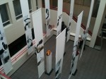 Die Arbeiten von Nanni waren in ihrer typisch – informellen Art auf Fahnen aufgebracht und sehr aufwändig im Foyer gehängt. Den Rundgang in der ersten Etage schmückten ebenfalls ihre Werke.