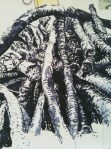 Juergen, Boris und Heinz haben mir Ausschnitte aus ihren noch nicht fertigen Zeichnungen gezeigt. Am Sonntag wollen sie das Ganze zu einer Einheit in Juergens Atelier zusammenführen. Ihr Arbeitsthema bleibt: „Am Ufer des Amur“.
