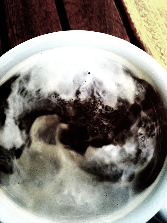 Und während wir eine Tasse Kaffee trinken und über den Tod reden, später auch über das Leben und warum wir auf diesem Ungeheuer „Kunst“ reiten, sagt er, dass die Welt im Grunde genommen in eine Kaffeetasse passt.