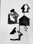 Manchmal spielt man nur so rum. Juergen hat mir Tusche -Reste geschenkt, in einem kleinen Gläschen und ich habe an meinem Zeichentisch im Schlafzimmer auf Papier aus dem Alten Wasserwerk in Wachtendonk, das ich dort gefunden hatte, „einfach so rum gezeichnet“. Machte Spaß!