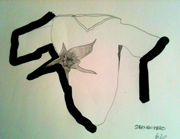Na ja: Juergen sitzt in seinem Atelier, täglich, erstellt seine Druckstöcke zum Thema „Blumen“, mal mehr oder weniger intensiv, trinkt Kaffee, alleine, blättert in Zeitschriften, denkt nach, zeichnet mal dies, mal das und hofft auf irgendetwas. Hängepartie eben, so sagt er!