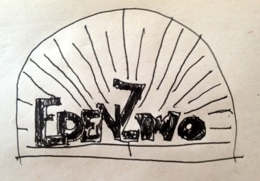 Tobias kam vorbei, in „Zelle k4“, redete mit Rudolf, dem Bildhauer, und mit mir über das Blogen und über vieles, was mit unserer Kunst zu tun hat und zeichnete auf dem Skizzenpapier von Boris, dem Maler, eine Skizze für ein mögliches „EdenZwo -Logo“ oder was auch immer.