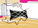 Boris der Maler, Juergen und ich saßen heute im Atelier vor der weißen Wand in „Zelle k4“ und Juergen beamte einige seiner digitalen Zeichnungen auf die große Fläche. Wir besprachen das Ganze.