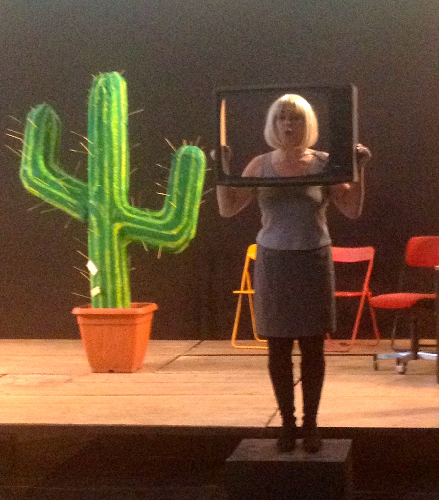 Boris der Maler, mein Mitstreiter aus unserer Ateliergemeinschaft, ist ein wenig „fremd gegangen“. Mit „Wantid!“. Das ist eine Theatergruppe der freien Szene hier in Wachtendonk und meine Schreibweise des Namens „Wantid“ ist nicht falsch. Er hat sich jetzt wochenlang nicht so total auf die Malerei konzentriert, sondern auf seine Rolle als Cem, den Polizisten mit Migrantionshintergrund, in dem Stück „der Kaktus“ von Juli Zeh.
