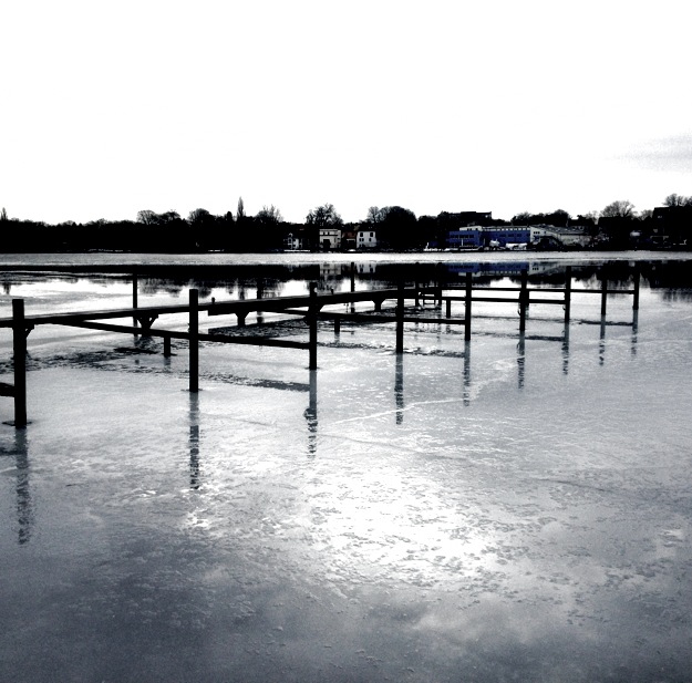 So, da bin ich wieder. Mit einem kleinen Photo von der teilweise zugefrorenen Dahme in Berlin-Köpenick. Und weil es hier am Niederrhein so winterlich ist.