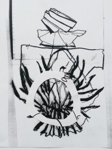 light side mix | Herz Seele Blume Kreis | eine Monotypie, ein Linolschnitt und zwei Zeichnungen