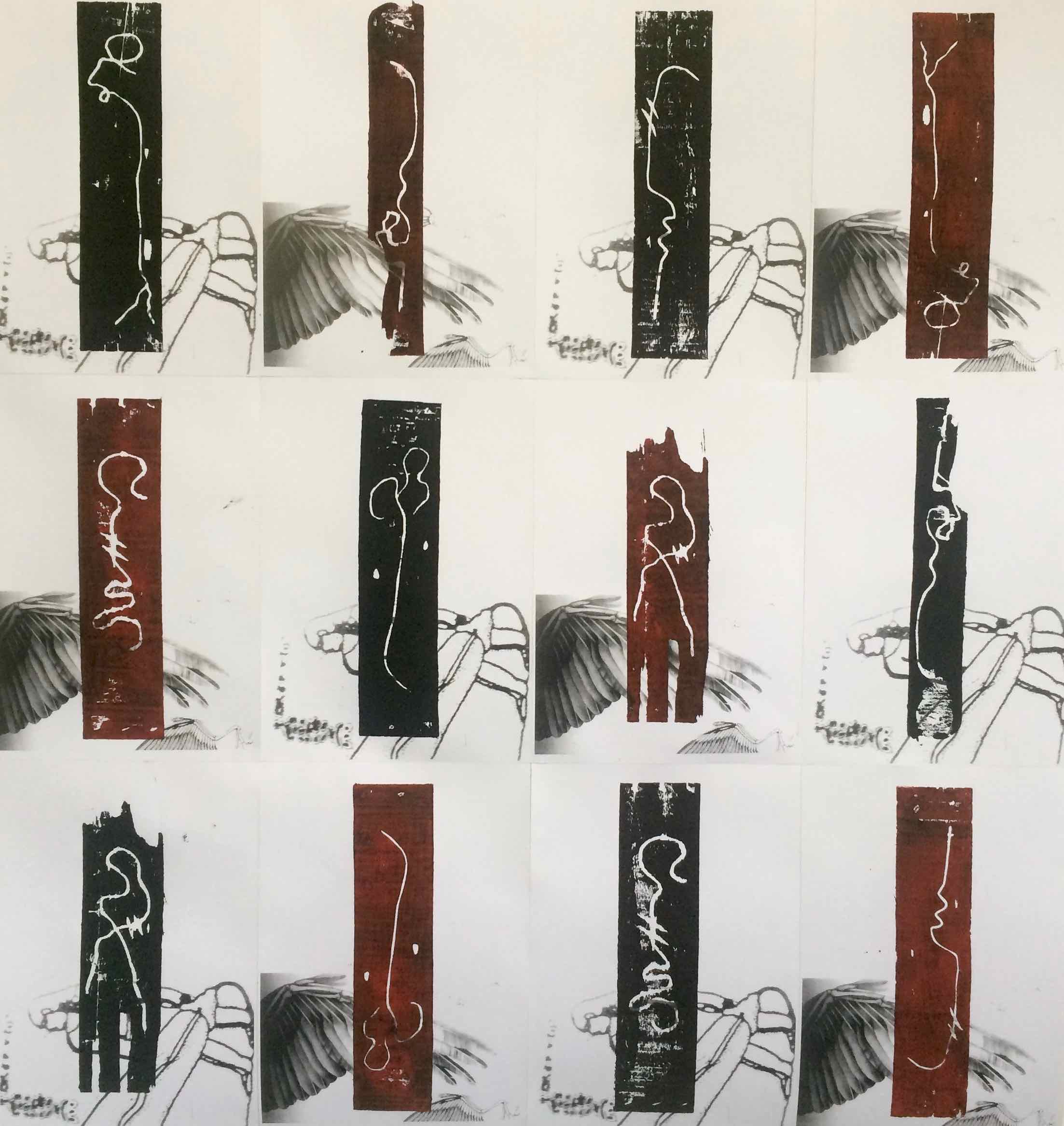light side mix | Herz Seele Blume Kreis | eine Monotypie, ein Linolschnitt und zwei Zeichnungen