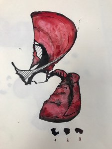 Erst vor ein paar Tagen ist Juergen aufgegangen, dass seine gezeichneten „Echokammern“, in denen sich der Wind fängt, in Beziehung stehen zu den “ Horchgeräten“, die er letztes Jahr gezeichnet hat. Beide Themenbereiche gehören zum Projekt „aus Latos Werkstatt“.