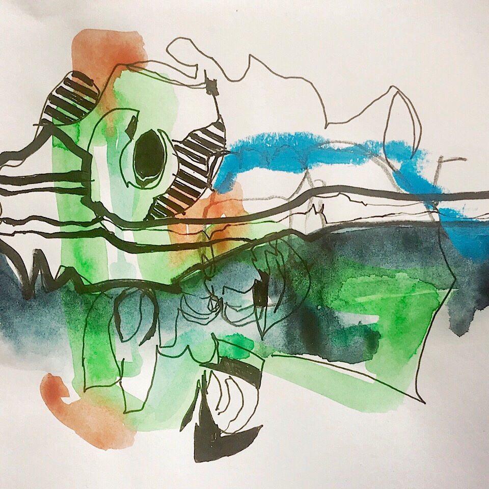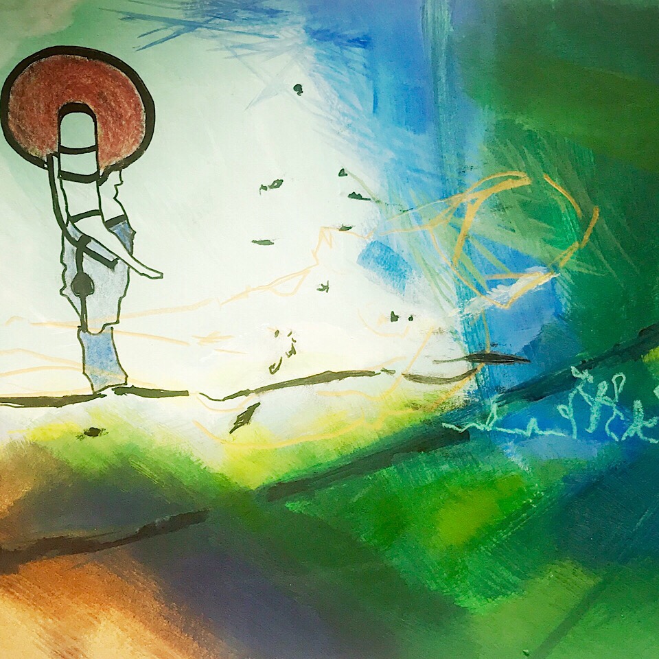 Das katholische Superzentrum Paderborn mit der Kaiserpfalz und dem Dom haben wir heute nicht besucht. Heike und Juergen hatten Ihr Superzentrum in Heikes Atelier und haben gemeinsam so einiges beim Zeichnen und Malen versucht. Im Ping Pong Verfahren haben sie zusammen die Bilder erstellt.