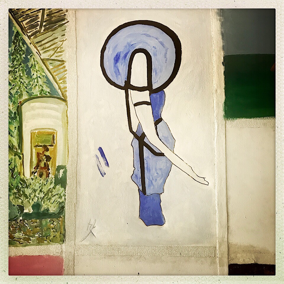 Teile einer Leinwand, die auch schon Spuren von anderen Besuchern trug, wurden von beiden Jürgens bemalt.