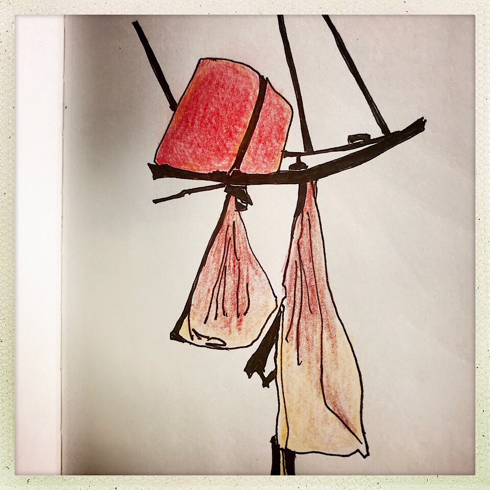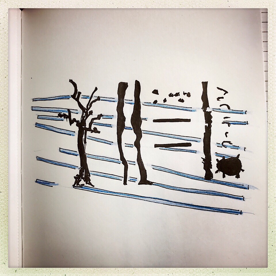 Zeichnungen sind auch entstanden. Juergen hat am Moselufer die Erinnerungen von gestern gedanklich herausgeholt und zu fassen versucht: Räume, Projekte, Magie und so was alles.