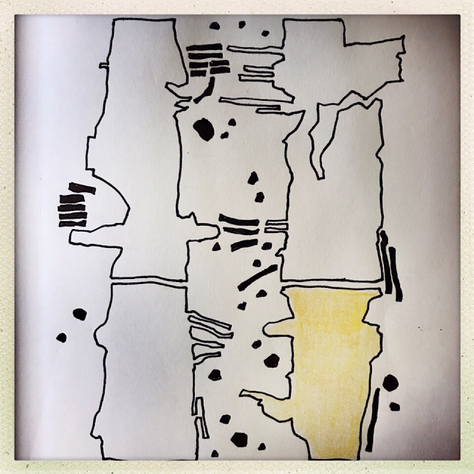 Da steht ein Thema an: „der Zwickel“. Zusammen mit Antje. Ein ganzes verlängertes Wochenende lang. Über Karneval. Auch so eine Art von Karnevalsflucht. Sie wollen sich herantasten. Und mit dieser Skizze hat nun die konkrete Umsetzung bei Juergen begonnen.