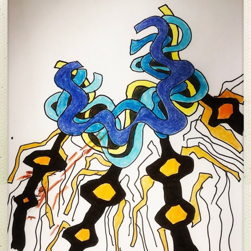 Dass dieses Gedicht im Kopf herum spukt, versteh ich gut. Da ist ein Klang von Freiheit, von gelassen über den Dingen stehen, selbstverständlichem , positiven Eigenwillen, von einem Hauch zauberhafter Magie, die Ketten und einengende Netze sprengt. Das Letztere assoziiere ich auch mit deinem beeindruckenden Bild, das erstere mit deinen kraftvollen Farben. Liebe Grüße, Petra