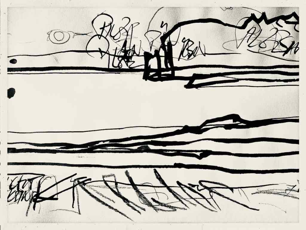 Die Bewegungs – Linien sind als dokumentarische Zeichnung im Nachhinein entstanden, nicht direkt, sondern erst nach einem Jahr. Es gab sechs Erlebsnissegmente dort am Hoogen Dyck, die mich besonders bewegt haben.