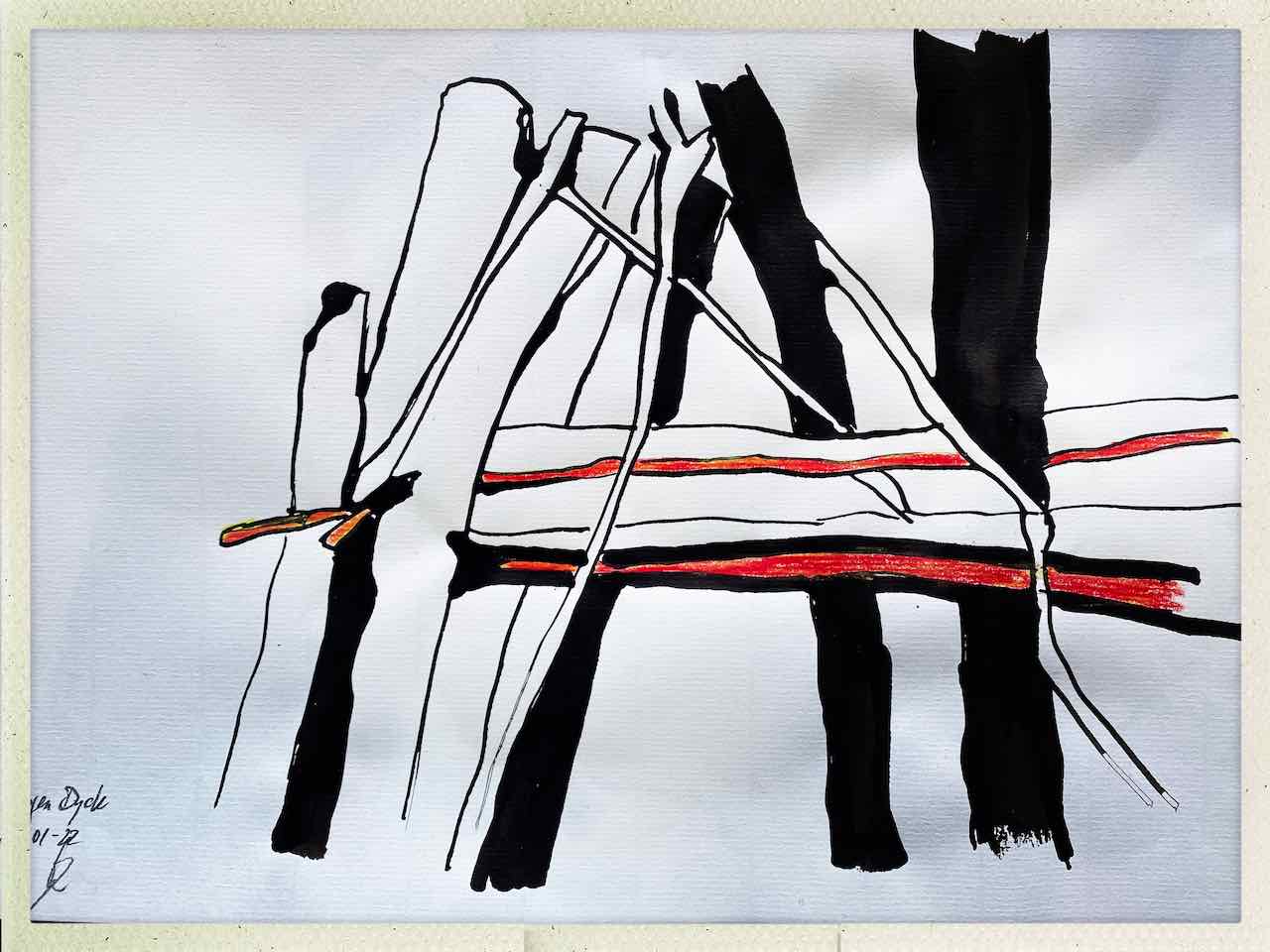 Hoogen Dyck | more scetches | part 9 | it goes around and around | Tusche und Buntstift
