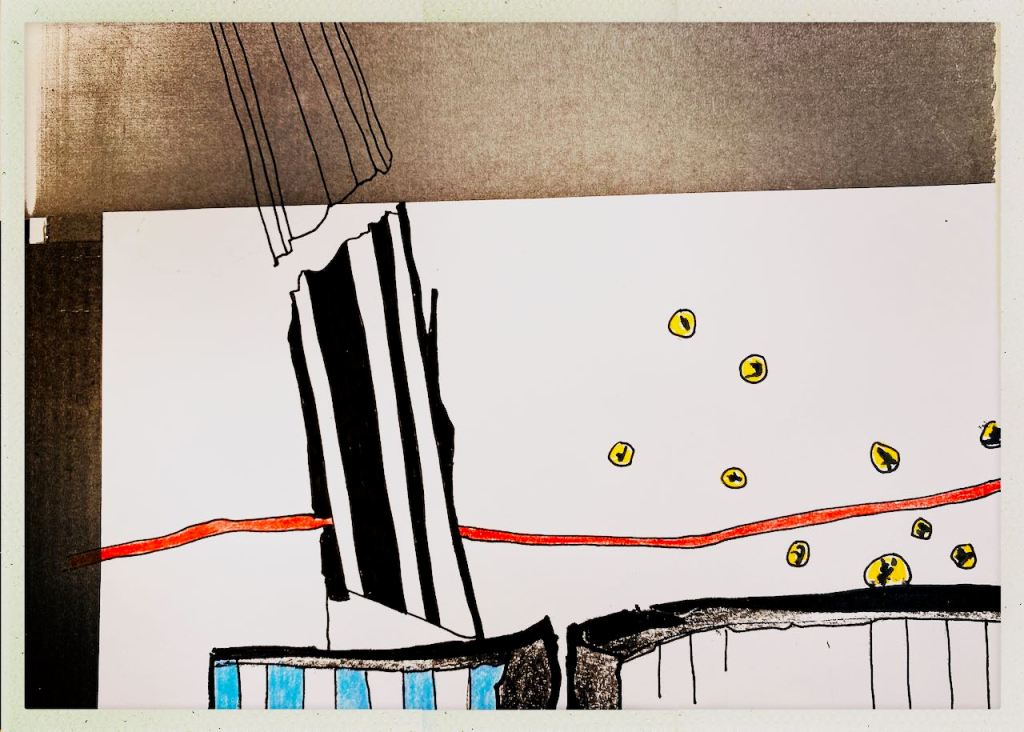 1. Ich finde ja die Aufgabe schon so irre, rätselhaft, verwirrend und schön: Welche Spuren gibt es? Ja, Spuren wovon denn? Spuren hinterlässt jemand oder etwas. Beides, die Frage und die Antworten, geben das Subjekt nicht preis. Der Betrachter fühlt sich wie Sherlock Holmes – und das finde ich sehr…..herausfordernd gut.