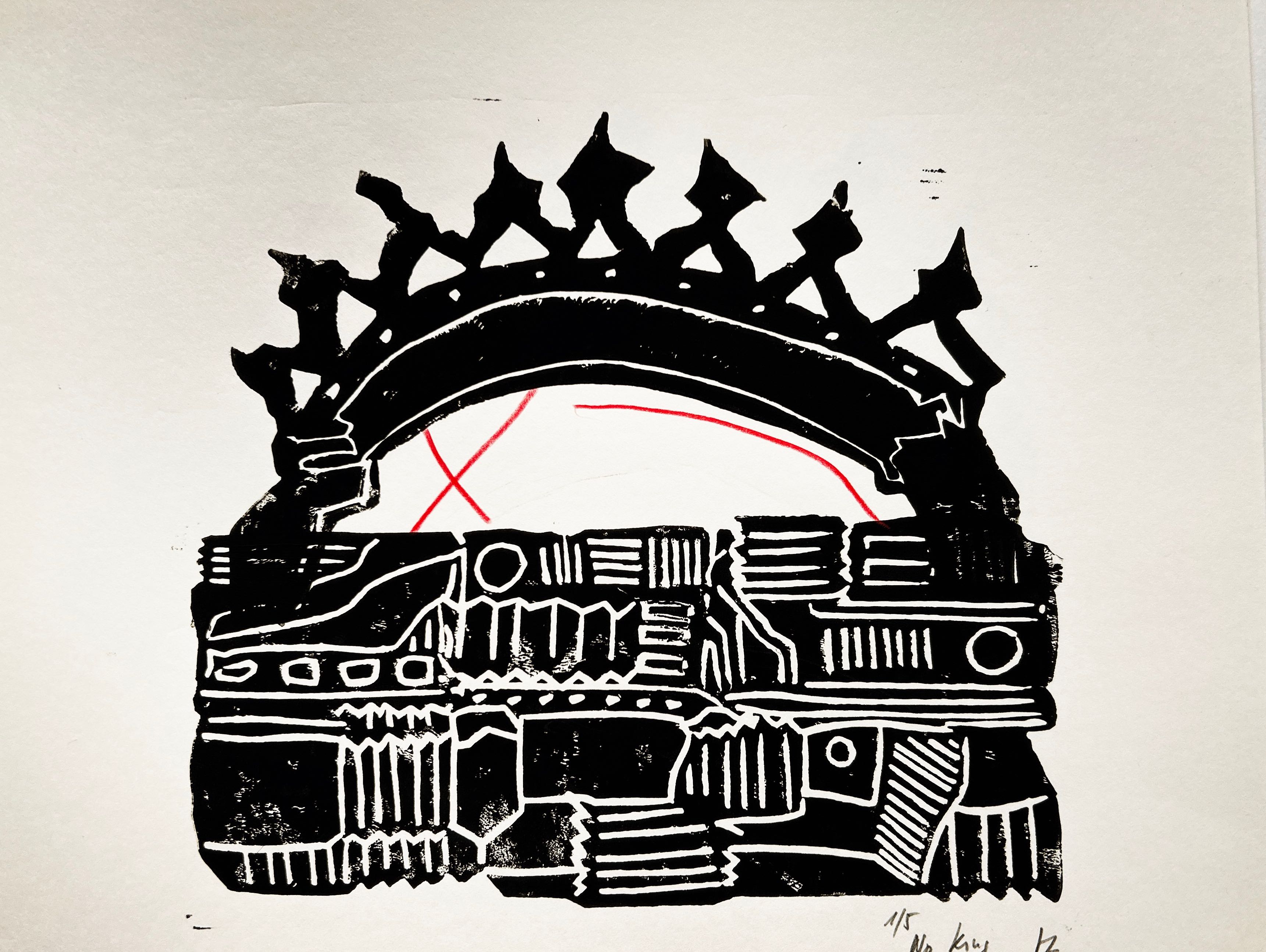 Eine zentrale Druckplatte und ihre drei Variationen, mit den Titeln: this maschine kills, eherNo und no kings, entstanden zwischendurch, weil Jürgen mal Lust auf etwas anderes hatte.