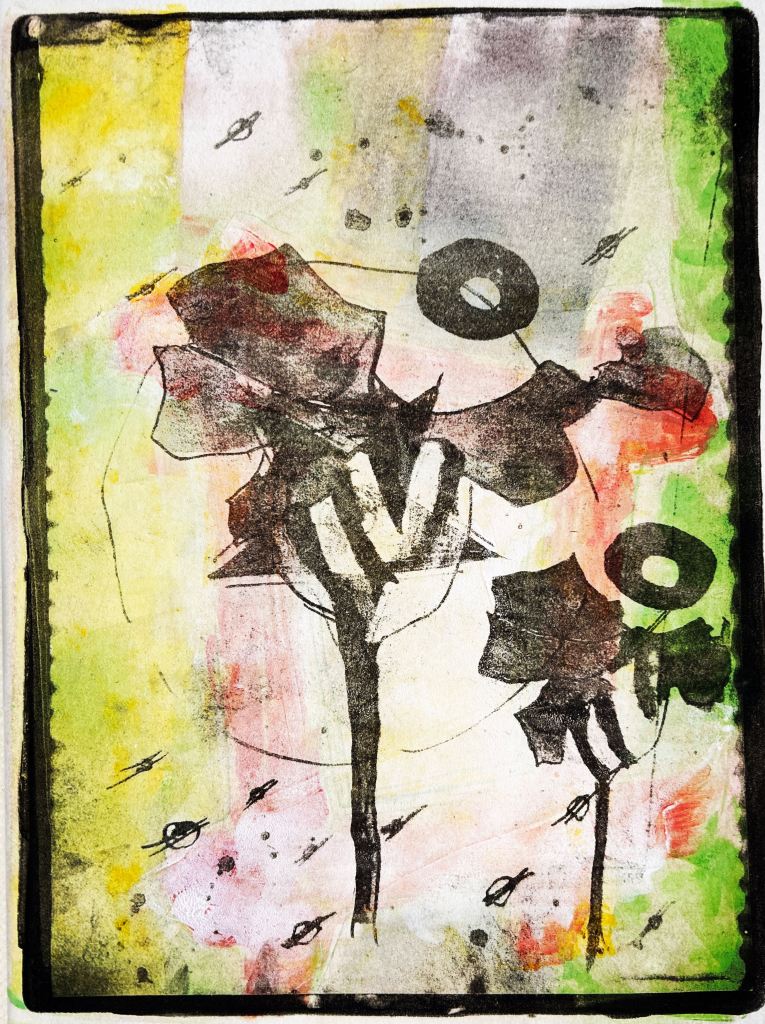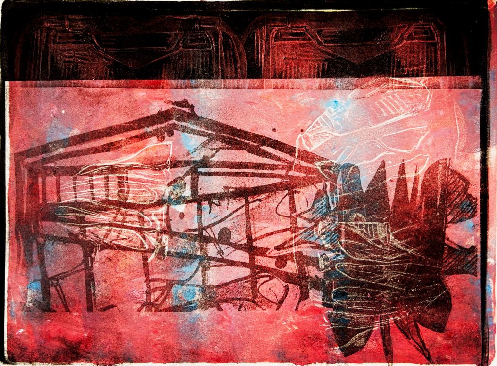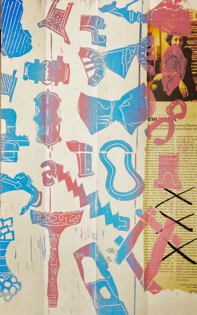 Diese Druckgrafiken haben keinen inhaltlichen Zusammenhang zum Thema Zwickel, obwohl sie während der Zeit im Zwickelbüro entstanden sind. So ist das eben, wenn man experimentiert.