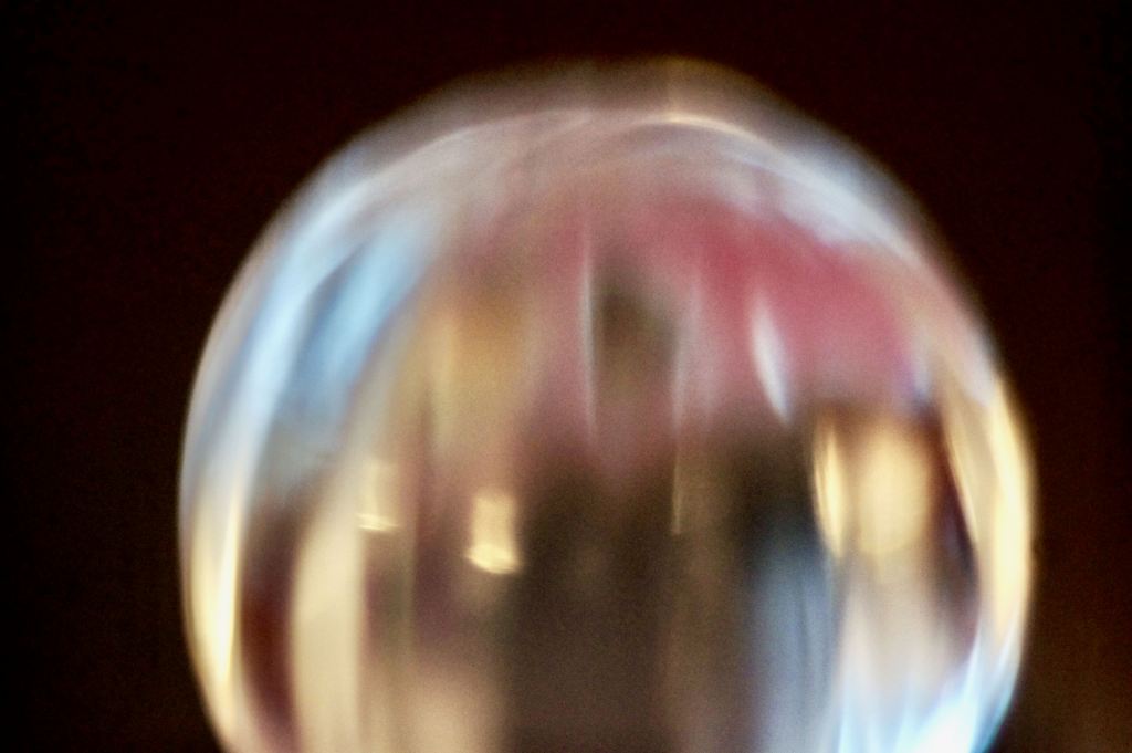 Buchalov sagt zu seinem Photo: „Schon faszinierend mit welcher Leichtigkeit der Löwe ein Makroobjektiv durch Kombination zweier Objektive aus dem Hut zaubert. Eine Makrofotografie ist also die Vorgabe. Buchalov hatte noch ein paar Makroringe in der Schublade herumfliegen. Die wurden auf das Heidosmat montiert und seine Foto-Zimmerreise im Haus begann. Runde Körper hatte er im Visier. Die Glaskugel einer Bonboniere wurde es. Der Reiz der Makrofotografie besteht ja darin, das verborgene Details und Welten, die sonst dem Auge verborgen bleiben, im Foto „nach oben gespült“ und sichtbar werden. Abstraktion und Gegenständlichkeit treffen sich zudem in einem Bild.“