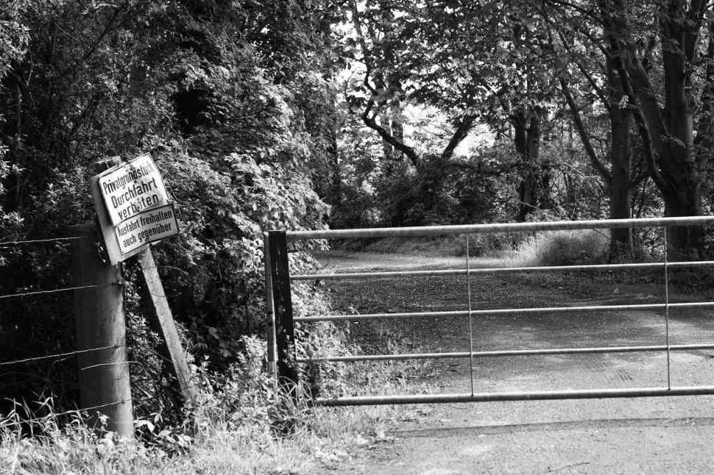 Das Bild oben zeigt die Absperrung einer Zufahrt zu einem Baggerloch. Die Kiesbaggerei ist hier am Niederrhein eine wichtige Sache. In großem Stil wird hier der Sand zu tage gefördert. Und es ist kein Ende in Sicht, denn der Bedarf der Bauindustrie ist wohl riesig. Ist das Baggerloch nicht mehr ergiebig, dann wird es aufgegeben, ja dann wird rekultiviert, was im Normalfall bedeutet, dass die Ufer bepflanzt werden und anschließend die Angler ein neues Revier finden. Und die bauen sich bisweilen kleine Hütten an den See und die Zufahrt zu diesen ist dann für das gemeine Volk gesperrt. Wie gesagt: irgendetwas liegt immer quer.