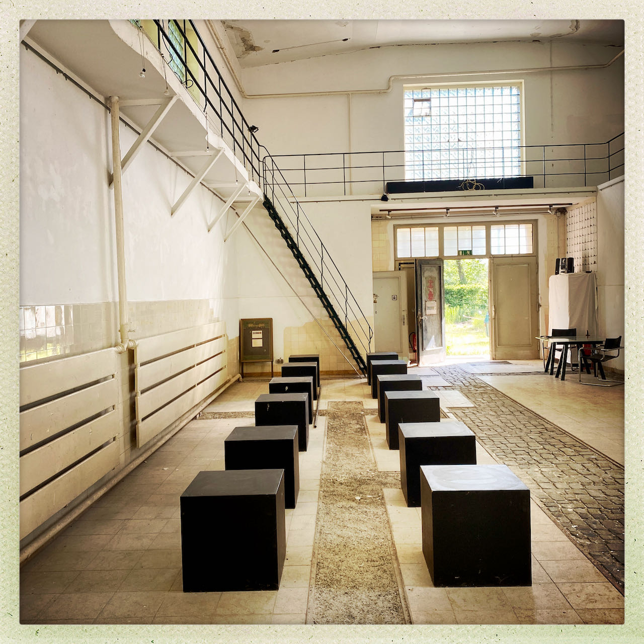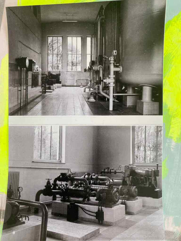 Das ist das Alte Wasserwerk in Wachtendonk heute. Das ist der Ort, an dem Jürgen sich gerne aufhält, der ihm über die Jahre ans Herz gewachsen ist, und den der Kulturkreis Wachtendonk für Ateliertätigkeiten zur Verfügung stellt. Das Wasserwerk liegt in einem Naturschutzgebiet am Rande des Ortes, mitten in der Natur, und hat daher so seine eigene Atmosphäre.
