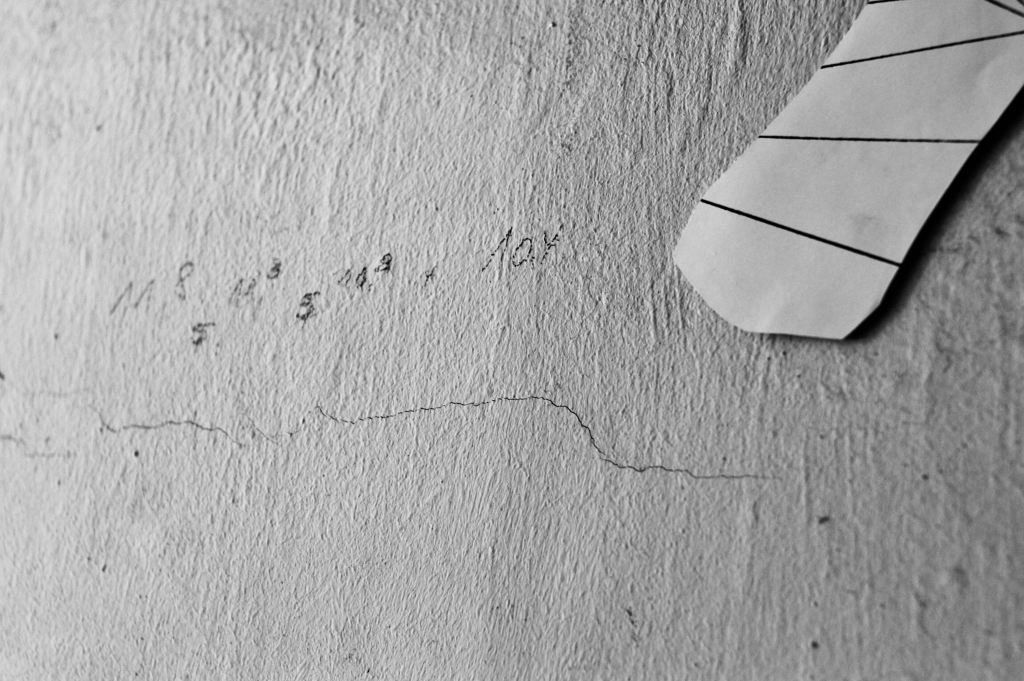 „Nimm die Kamera und streife für genau eine halbe Stunde im Gebäude umher, finde Wachstumsstellen, markiere sie mit Papiermarkern und fotografiere Sie.“ Und das war der daraus abgeleitete Arbeitsaufrag, ebenfalls an sich selbst gestellt, den es zu erledigen galt.