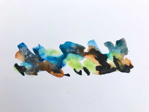 Und dann hat er auf altem Aquarellpapier, das er aus den Tiefen seiner Fächer im Wohnmobil hervorholte, begonnen „das Meer“ und das „am Meer“ zu aquarellieren. Tusche durfte nicht fehlen. Ganz konventionell, auf seine Art.