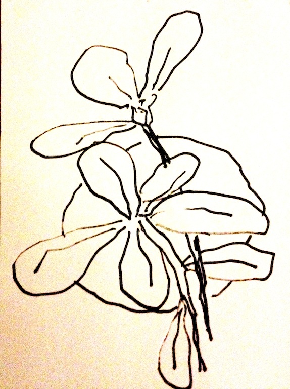 Aus Verzweiflung habe ich auf der Rückseite einer Eintrittskarte eine Pflanze gezeichnet – ganz grob und stümperhaft und während der Autofahrt.