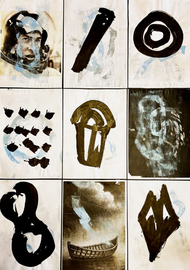 Jürgen verbindet mittlerweile seine zweidimensionalen Arbeiten in der Präsentation stets mit einem Objekt. Bilder und Objekt stehen sich gegenüber und ergänzen sich.