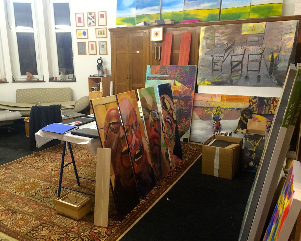 Diesmal waren alle Künstler seiner Ateliergemeinschaft geladen. Diese alle terminlich unter einen Hut zu bringen ist immer schwer. Das weiss ich aus der Vergangenheit. Da ist immer sehr viel Individualismus im Spiel. Sie waren aber fast alle da, bis auf zwei. Na ja!
