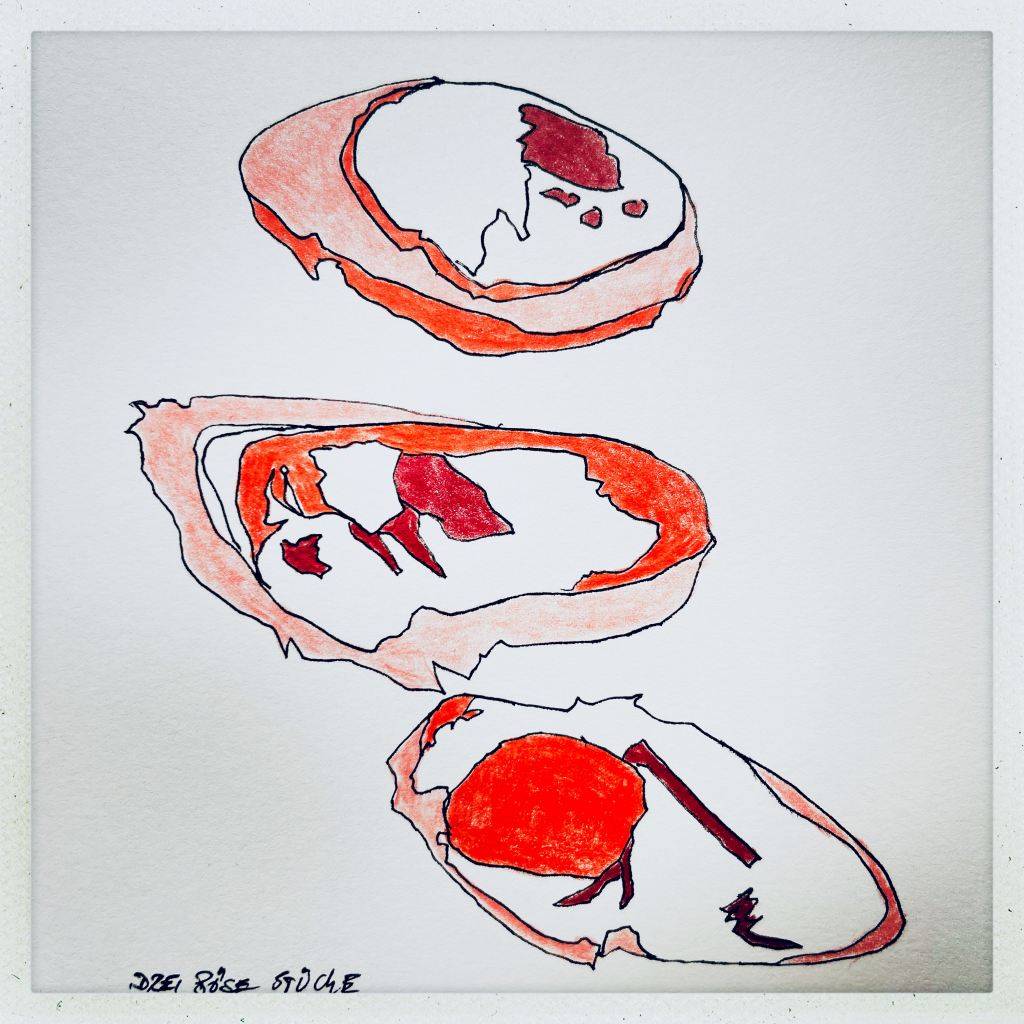 Das ist der Ablauf der Vorgehensweise. Nicht immer, aber in diesem Fall. So entstehen Skizzen. Die daraus resultierenden Papierobjekte sind noch einmal ein besonderes Kapitel. Einige davon habe ich hier schon gezeigt.