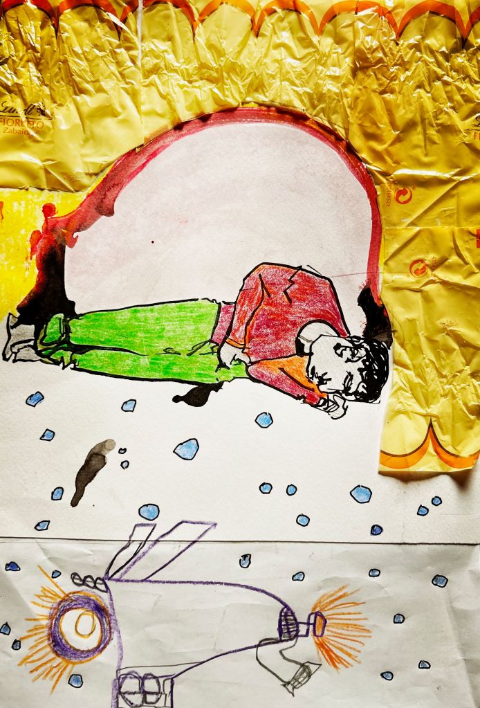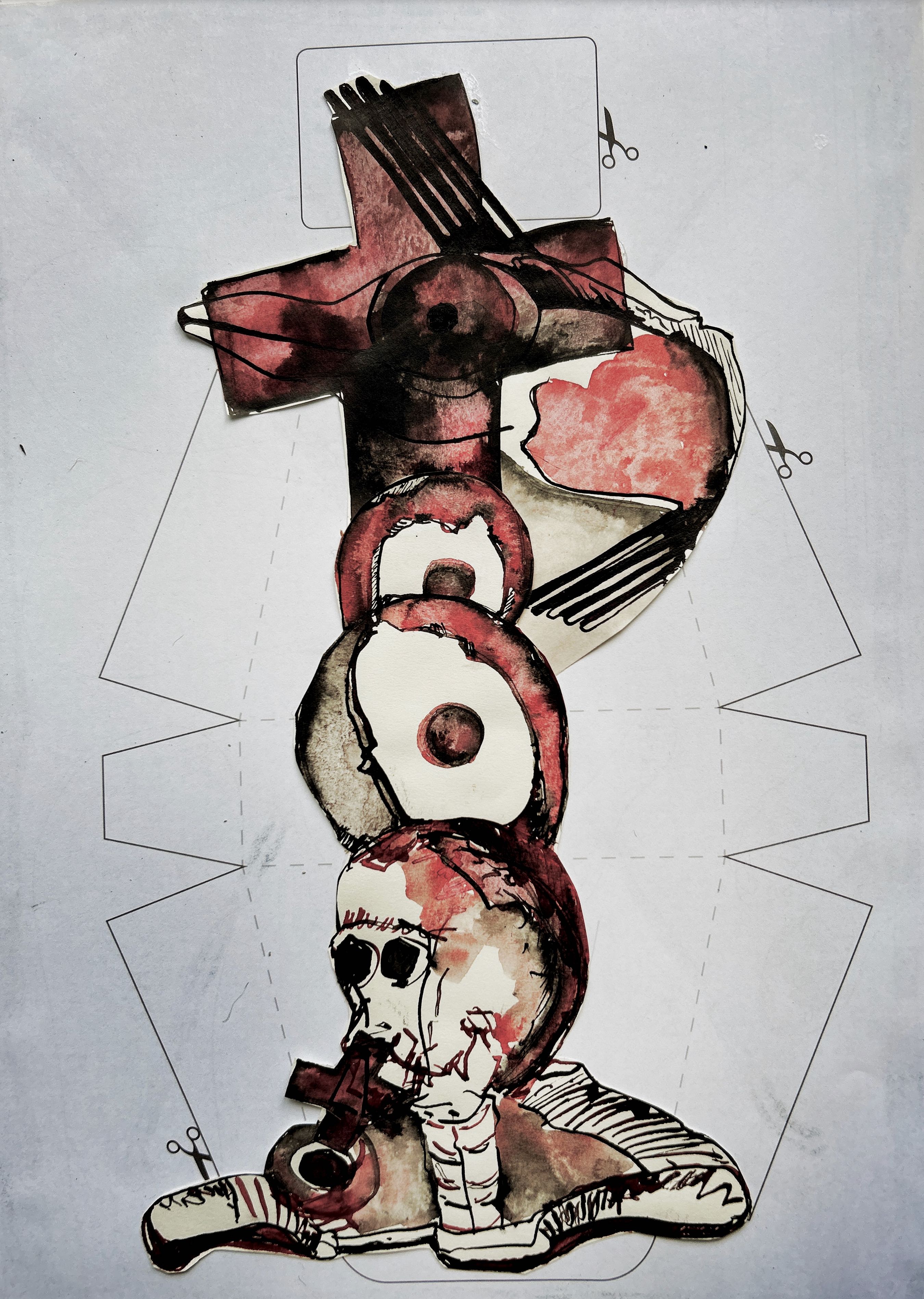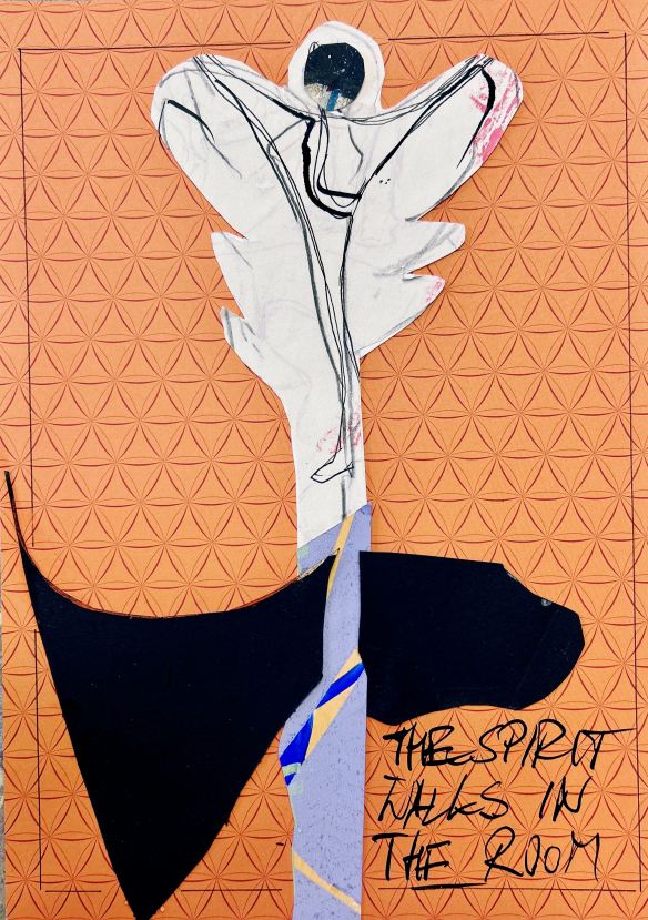 Ich lasse mich treiben und erschaffe Bilder von Engeln, von Engelsformen, von Flügeln, erzeuge Faltungen oder Scherenschnitte oder kritzele Engelszeichen auf Restepapier und Zeitungen.