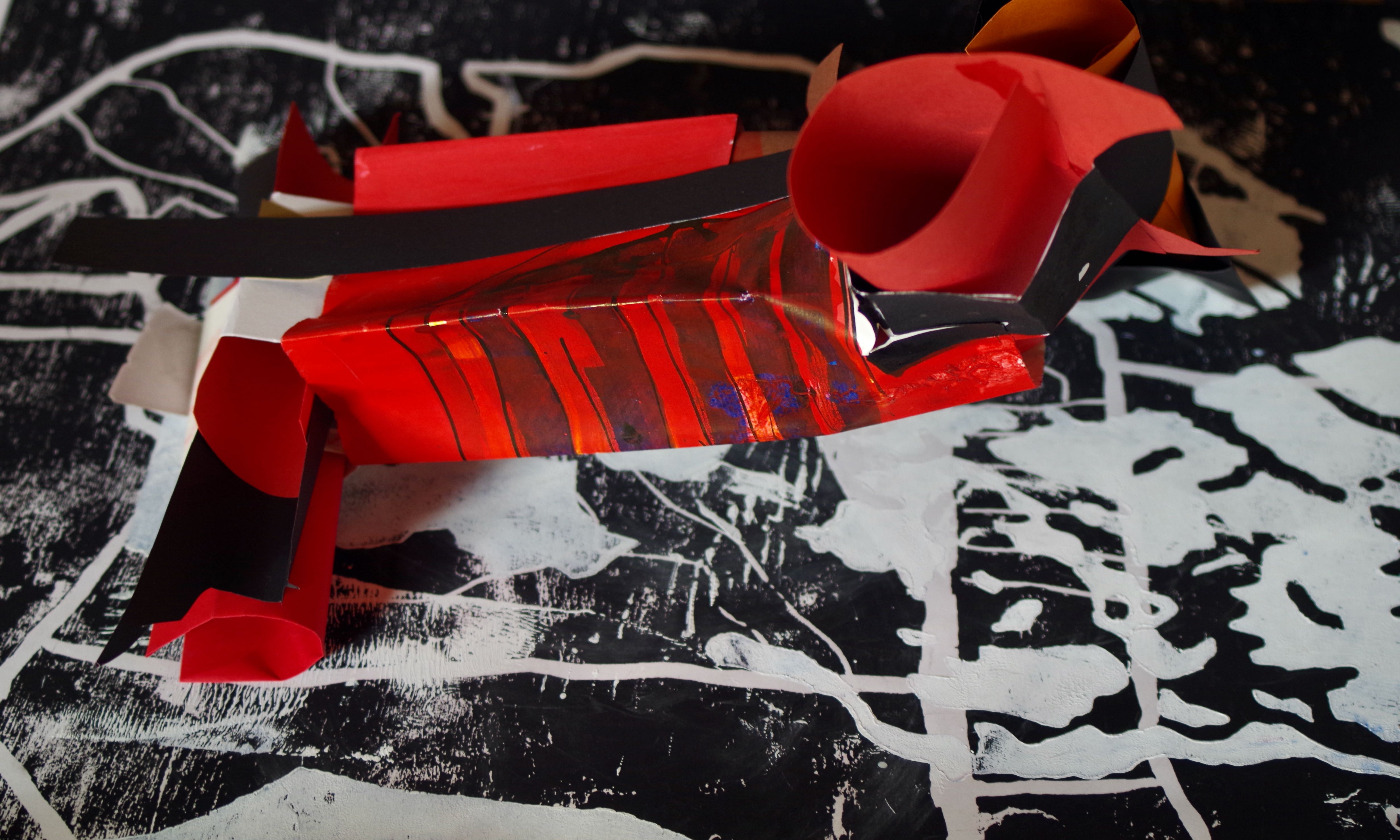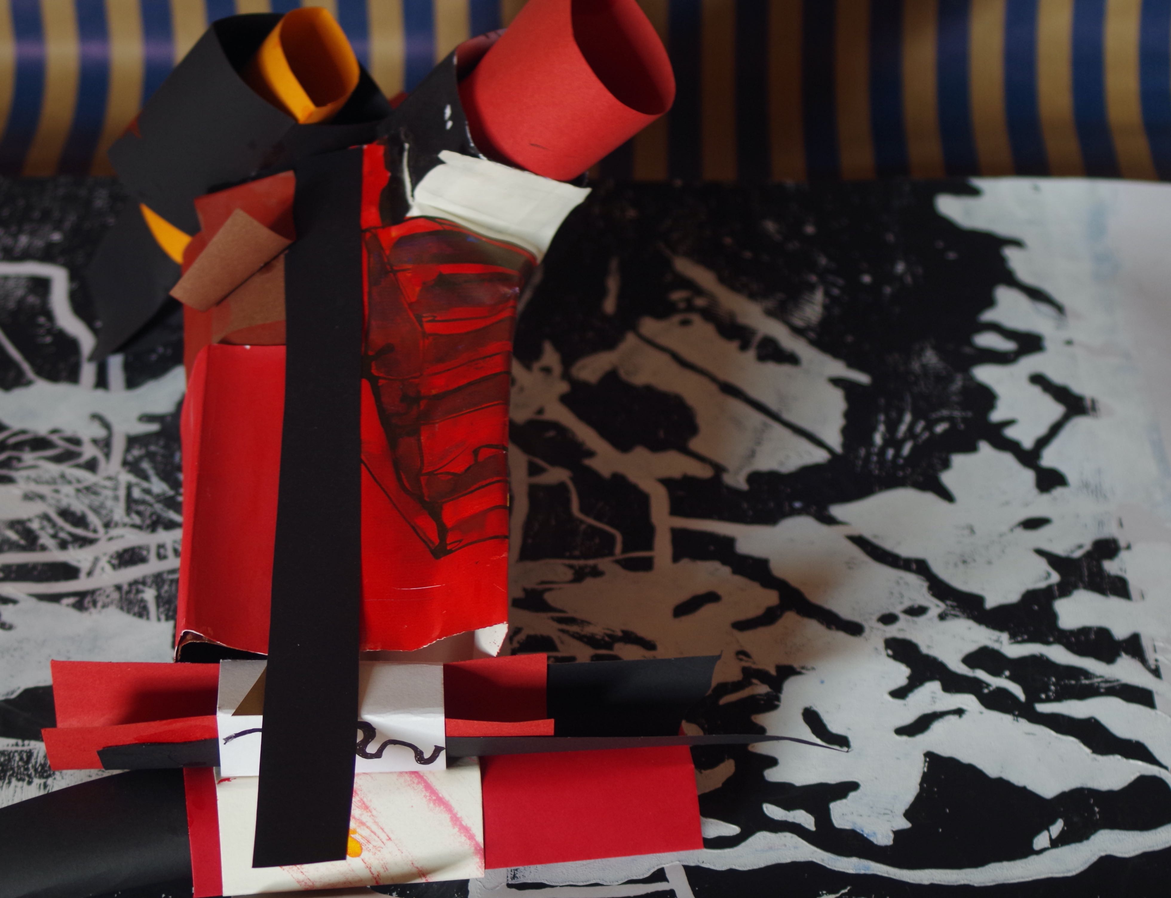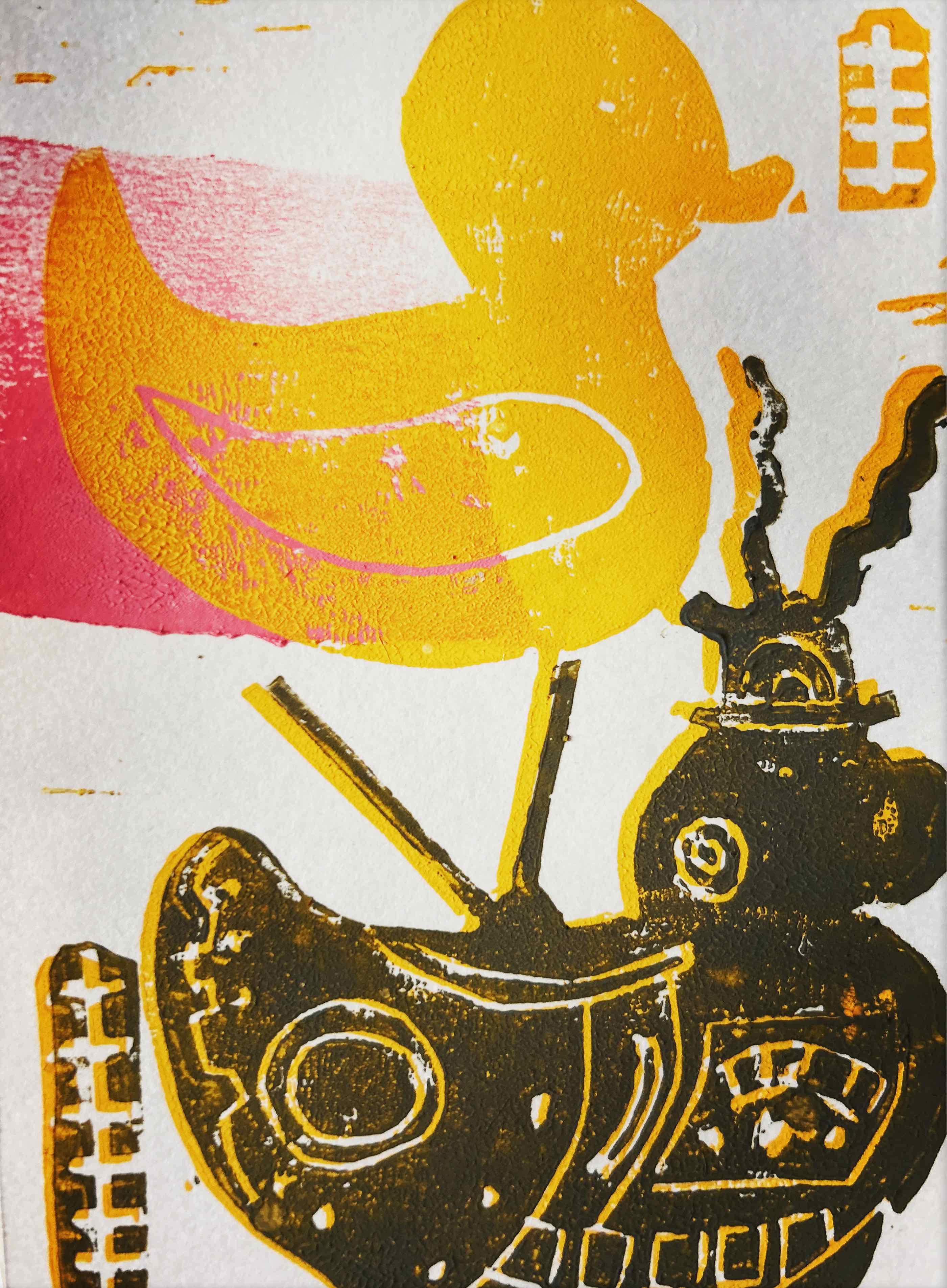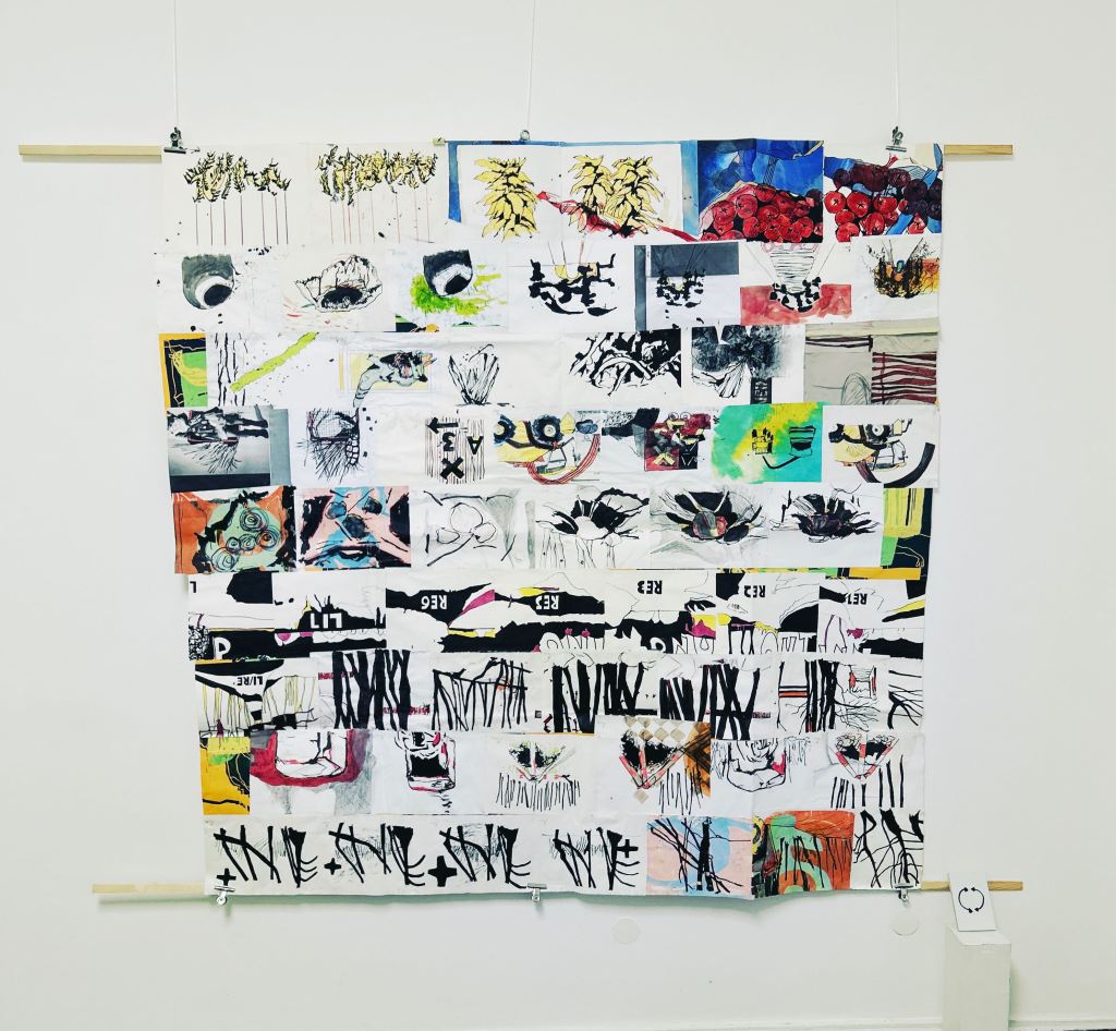 Jürgen sagt: “Ein Raum für mich ganz allein: das hat schon was“. Im Atelier hat er einiges zusammengesucht unter den Begriffen „Hoffnung / Ort /Dengel / light side mix und dann nach Mühlheim verfrachtet. Im Ausstellungsraum haben die einzelnen Exponate fast von selbst ihren Platz gefunden. Es sollte wie zufällig platziert wirken, was natürlich Quatsch ist, denn ein absichtloses Arrangieren gibt es nicht. Er habe es danach so gelassen, wie es war.
