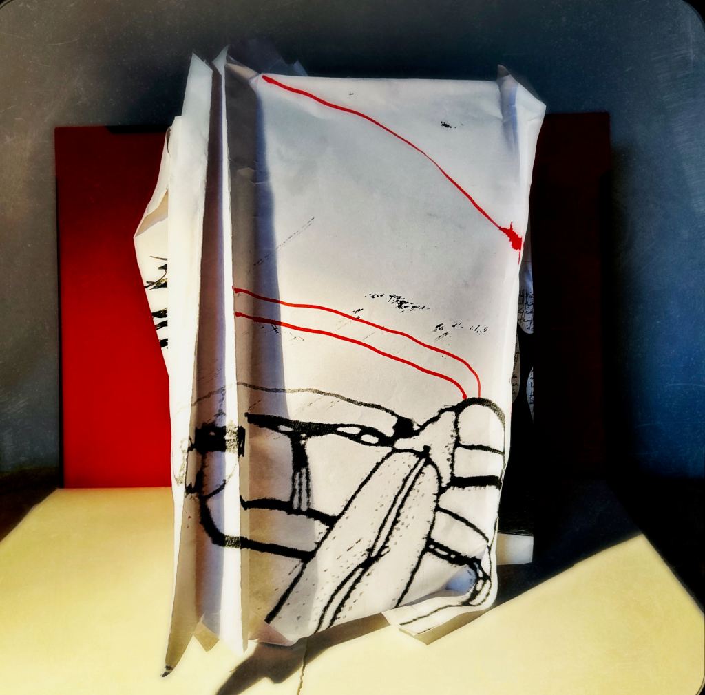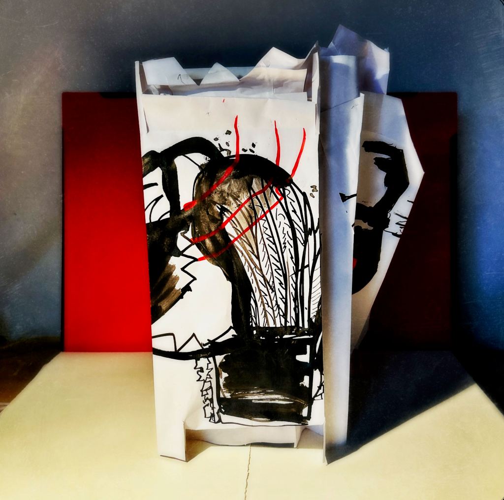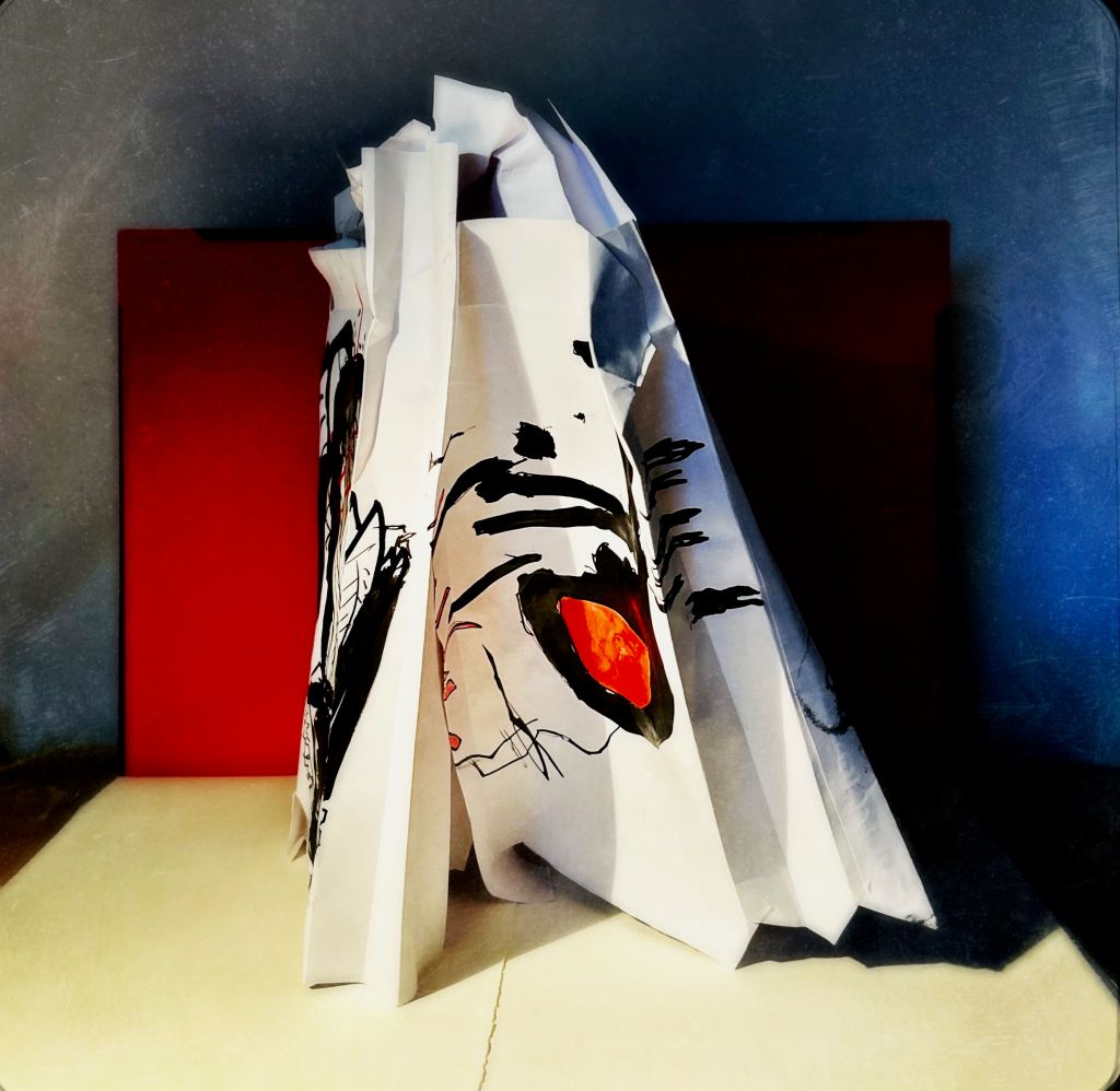 Die Hoffnung als treibende Kraft, als nach vorne, nach oben gerichtete Größe, aus einem Block erwachsen: so war es gedacht! Papier-Ikebana?