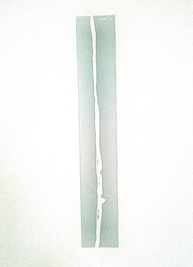 Rudolf hatte eine Siebdruckplatte als Druckstock bei sich, zeigte mir ein Bild seines Druckes und wir haben beides betrachtet. Rudolf sagte: „Manchmal entstehen Kunstwerke einfach so. Mehr aus Zufall. So wie dieses da. Ich habe einfach in ein Reststück der Platte eine Linie mit dem Beitel geschnitten und abgedruckt. Und wenn man dies nicht weiß, sitzt man davor und sinniert, spekuliert, interpretiert, was der Künstler wohl genau damit gemeint hat. Die Wahrheit ist: nichts, einfach nichts. Er hat nur gespielt!“