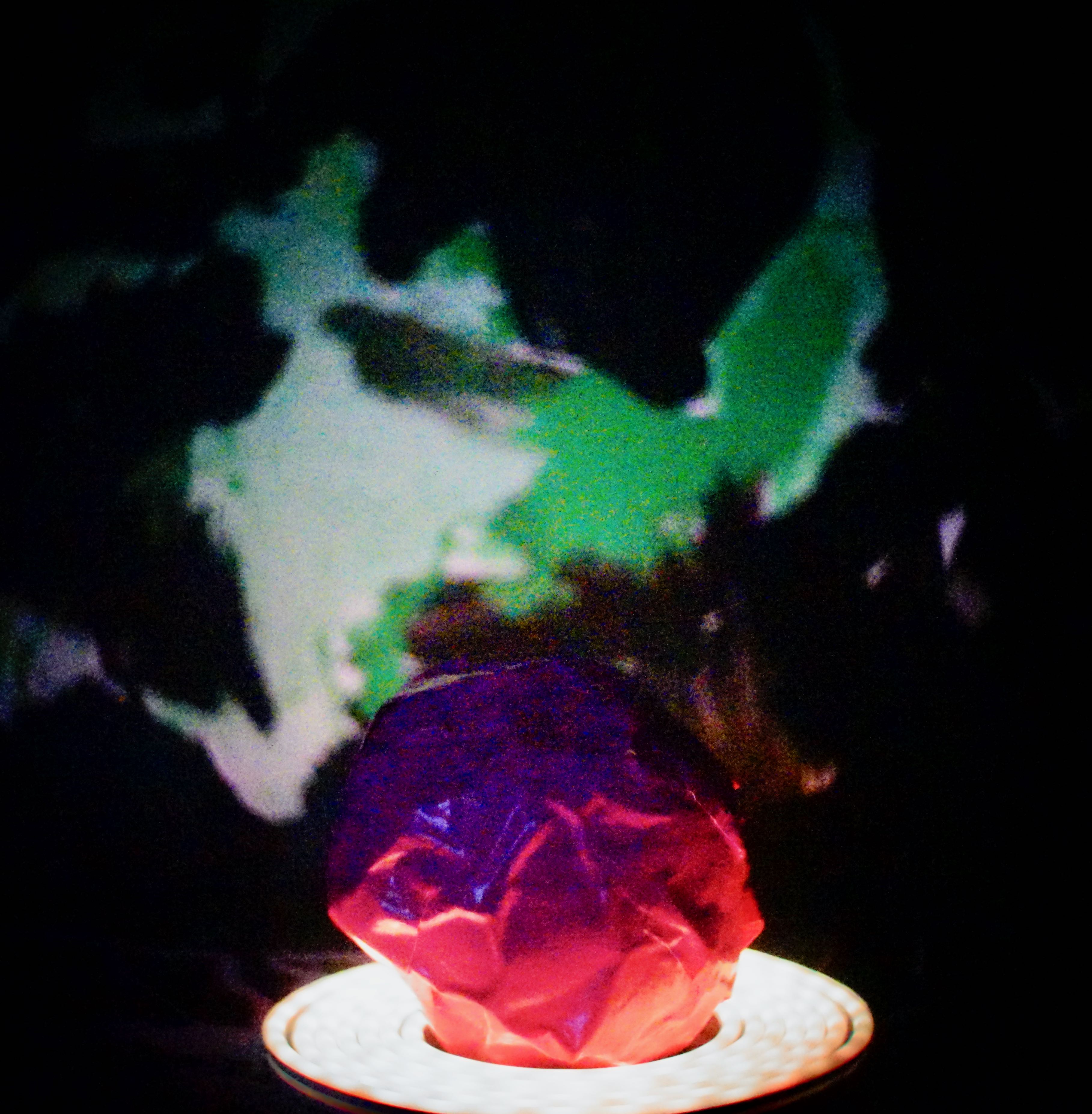 Buchlov sagt zu seinem Foto: „Ich hatte den Eindruck, dass sich der Löwe nicht recht entscheiden konnte. Daher gab es als Vorgabe eine „fette“ Anzahl von Bildern zum Thema „Energie“. Es waren viele Bildelemente zu sehen: die Farbe Blau, der Schnee, das Holz, Leitungen in einem Technikraum, ein Lichtstrahl, ein Glas und die Haken- Aufsteck-Blende. Ich habe von jedem Foto das zentrale Motiv genommen und symbolisch in ein Weckglas gesteckt. Ein Glas voll Energie. Ein Glas der Zusammenfassung. Ein Glas wie eine Bühne. Ein LID – Band steht zusätzlich für die Energie. Das Ganze kam dann auf meine kleine Papier-Bühne und ebenso der Hintergrund mit der Farbe Rot. Ich habe die „Pentax k30“ verwendet. weil sie Mehrfachbelichtungen kann und einen Digitalfilter besitzt. Ich habe das Thema „Energie“ fortgeführt.“