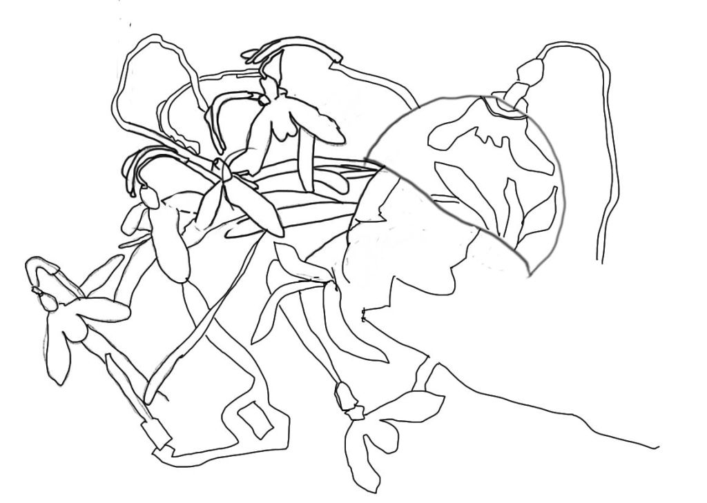 Es sind einige Zeichnungen entstanden, sagt Juergen. Und einen Teil davon könne man auf seiner Seite zu „Zelle k4“ sehen. Die Rose stehe im Mittelpunkt, als Thema, und es werde versucht, sie zu brechen. Es sei eine Mischung: Schläuche, Lianen, Rosen, Fototeile usw. Und mit der Technik der Collagrafie möchte er ein wenig experimentieren und diese Entwürfe dann umsetzten. Denn Rudolf der Bildhauer, und auf dessen Meinung hält Juergen viel, meinte schon vor Wochen, er solle mal wieder was Anständiges Drucken.