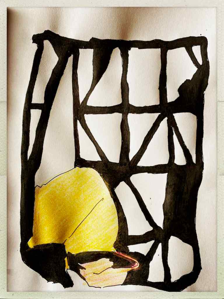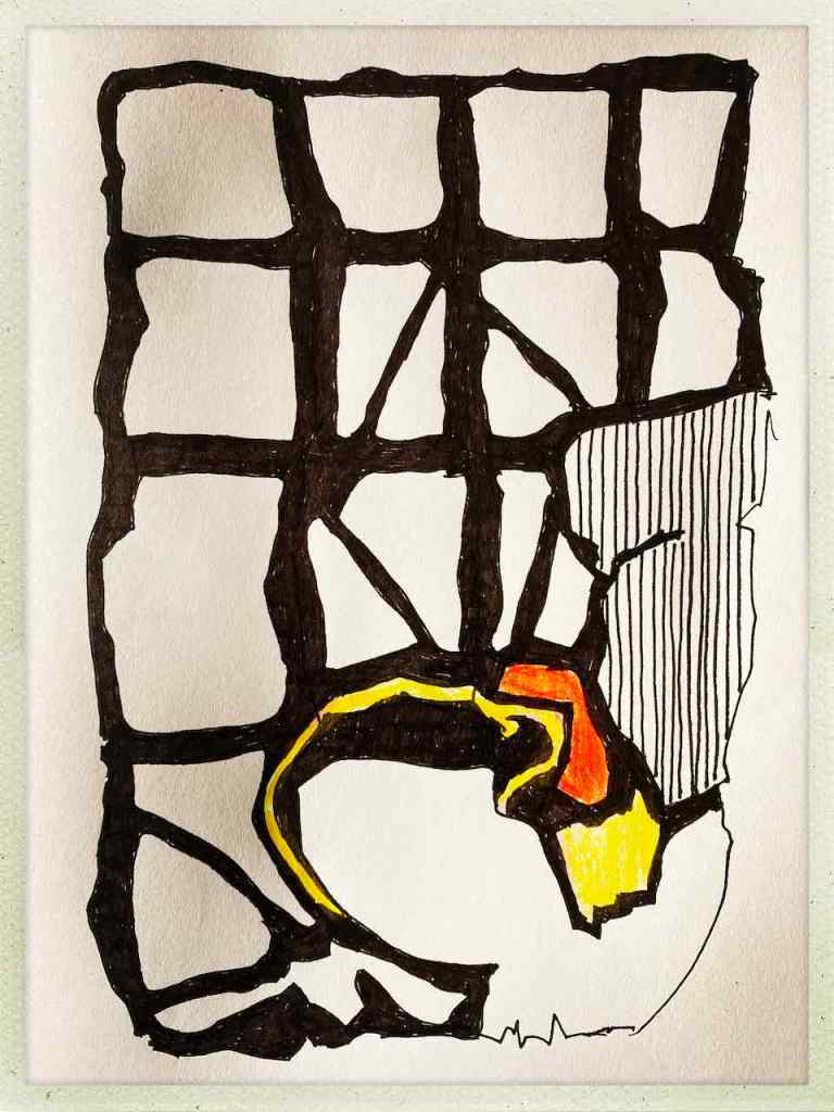 Neue Zeichnungen sind auch entstanden, die sich mit Erinnerungsstücken beschäftigen, Gegenständen, die er nun nach Jahren der Abwesenheit von diesem Ort wiedergefunden hat und die er mit den Möglichkeiten von heute zeichnerisch umgesetzt hat. Ich fragte ihn, ob das im Blick nach hinten oder nach vorne geschehe? Alte Geschichten und Blicke bringen einen ja nicht unbedingt weiter, wahrscheinlich nur dann, wenn sie in die Zukunft transferiert werden.