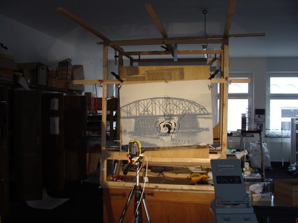 Zur Illustration habe ich ein Foto aus Juergens Atelier „Zelle k4“ genommen. Von meiner Maschine gibt es schon so viele Bilder.