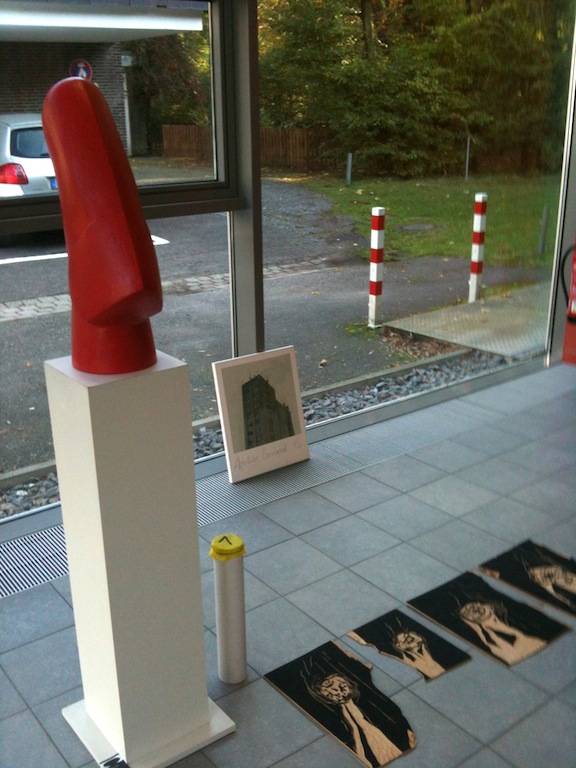 Den gesamten Tag habe ich mit Juergen verbracht, in seinem Atelier. Um 11 Uhr waren wir kurz im Bürgerforum der Stadt Geldern, weil dort das Projekt offiziell eröffnet wurde. Anwesend war die Presse und alle ausstellenden Künstler. Juergen war mit der Präsentation der Werke der Ateliergemeinschaft Ostwall sehr zufrieden. Weniger dagegen mit der Anwesenheit von Gästen. Die fehlten nämlich. Man war also unter sich.