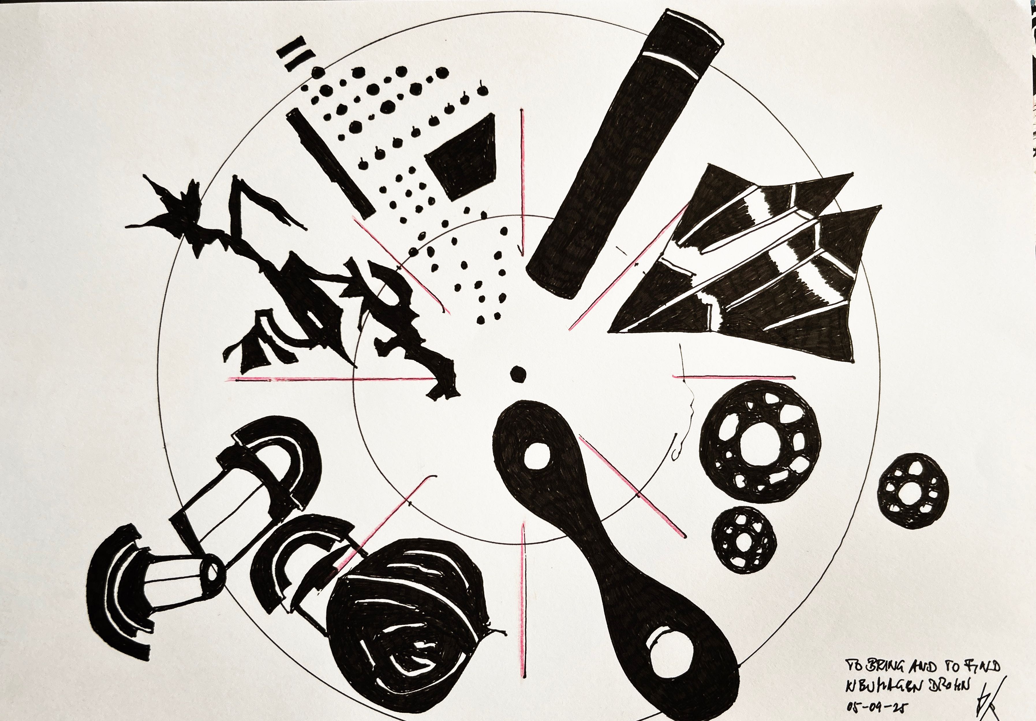 2023 hat Jürgen das Projekt “to bring and to find” zum ersten Male in Montroig/Spanien vor Ort realisiert. Auf der Basis dieser Werke hat er nun als Vorbereitung auf Scherenschnitte einige Tusche-Zeichnungen erstellt. Er möchte das Projekt “to bring and to find” von 2023 und 2025 zusammenbringen.