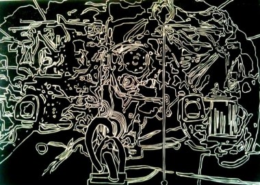 Die Sparte Zeichnungen/Skizzen habe ich so gut wie nicht gefunden. Sie kamen nicht mehr in dieser Form des Ausstellungsbetriebes auf der Biennale vor. Es gab eine Ausnahme: in der zentralen Ausstellungshalle des Arsenals fand sich eine kleinere Installation mit beamerprojezierten Zeichnungen..