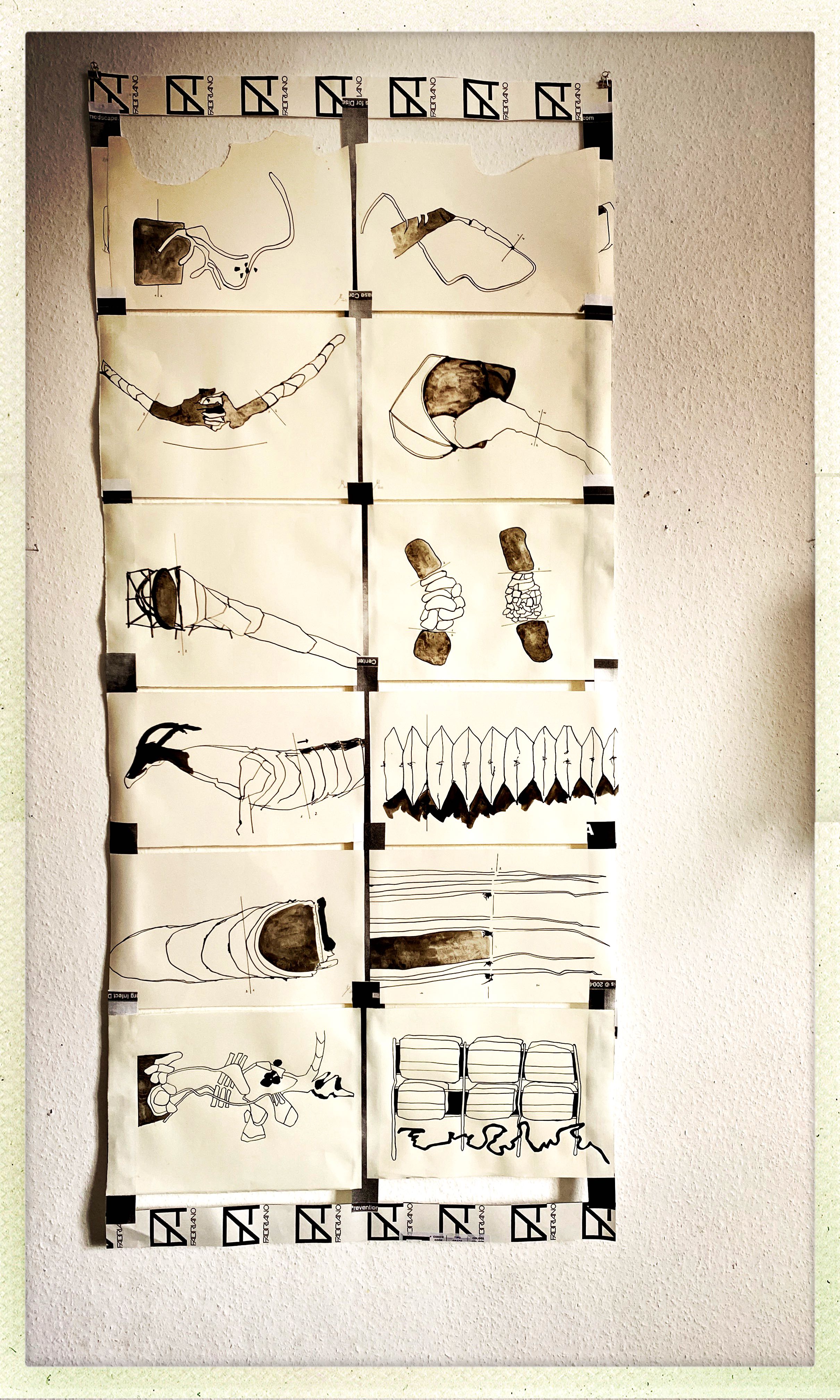 Daraus resultiert der selbstauferlegte Arbeitsauftrag: Untersuche die nahe Umgebung des Alten Wasserwerks fotografisch und zeichne anschließend Wachstumsstellen, die Du gefunden hast, und erstelle daraus Papierobjekte, die im dritten Schritt fotografisch dokumentiert werden und Ausgangslage für weitere Zeichnungen sind …