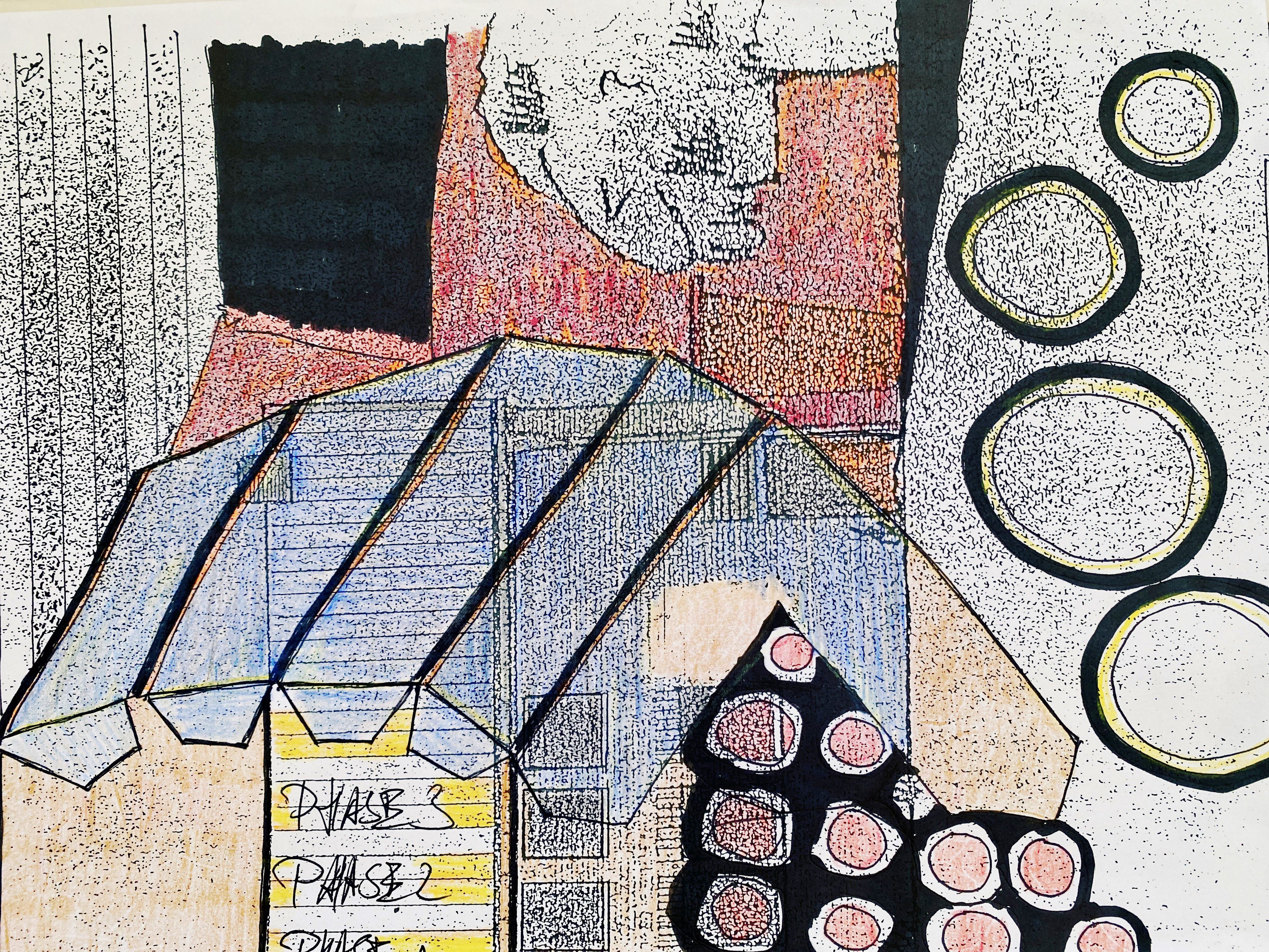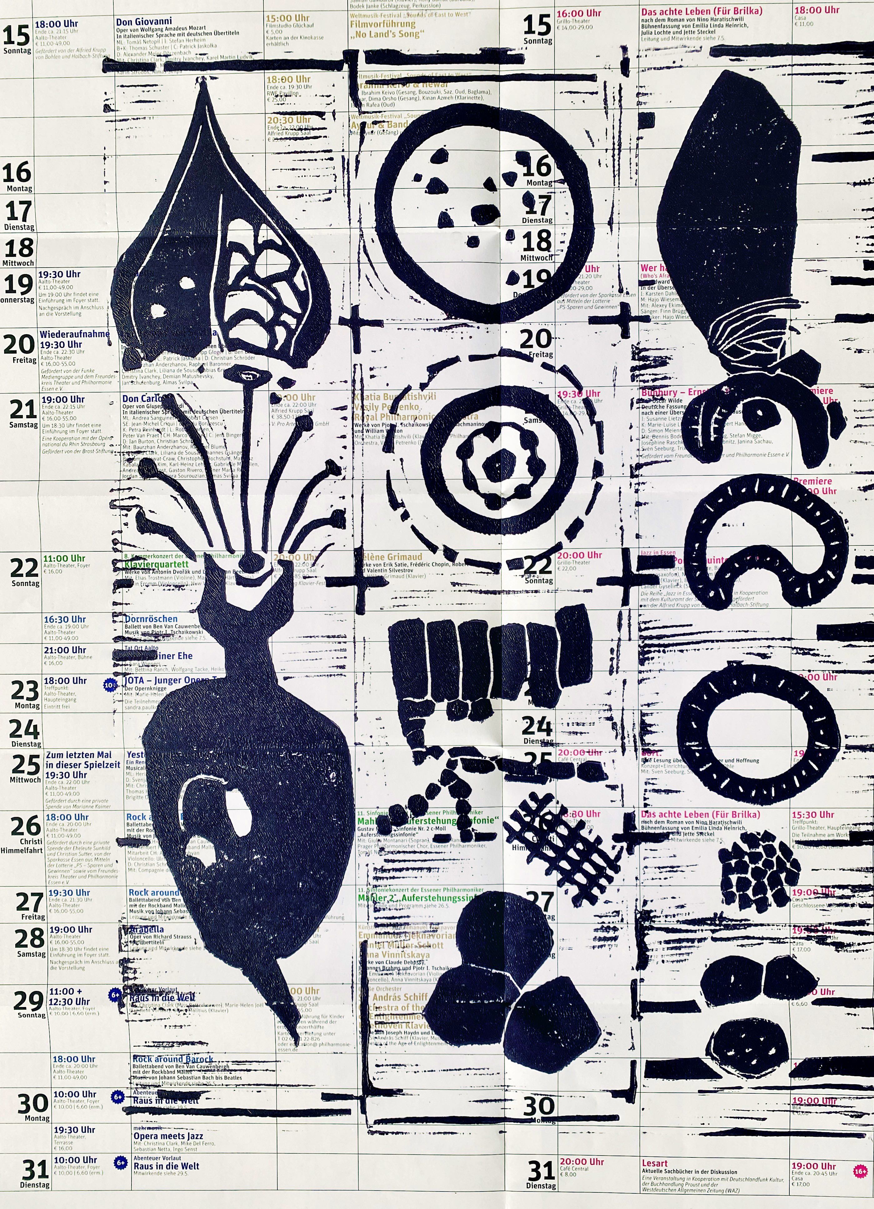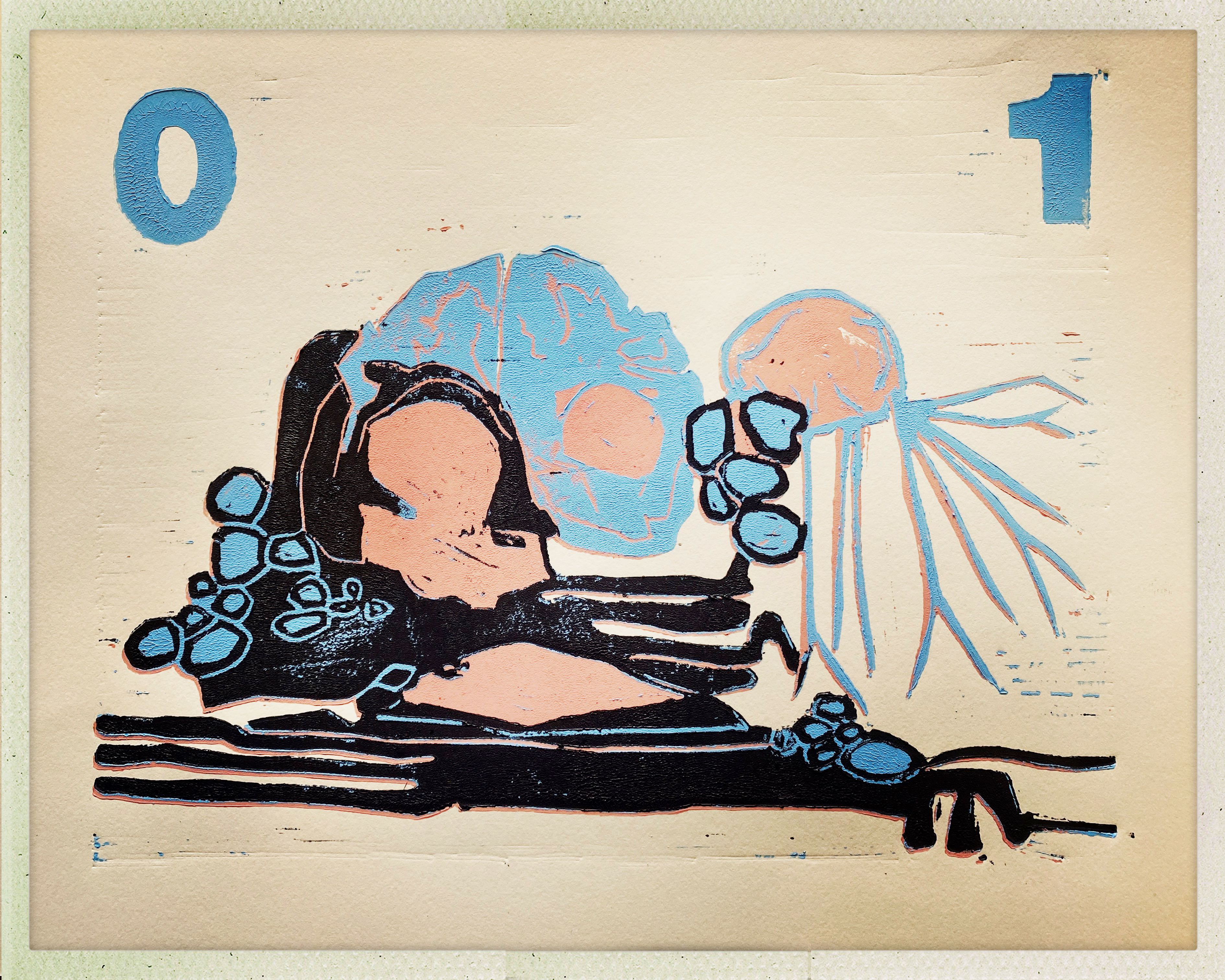 aus der skizzenhaften Visualisierung eines Vortrages durch Antje wird nun ein Linolschnitt: die Skizzen, die Antje kritzelte, hat Jürgen gesehen – die Worte zum pflanzlichen Wachstum hat er gehört – Verständnisfragen hat er gestellt – aber wirklich begriffen und verstanden hat er nur wenig. Geblieben sind Skizzen, die nun zu einem Linolschnitt wurden.