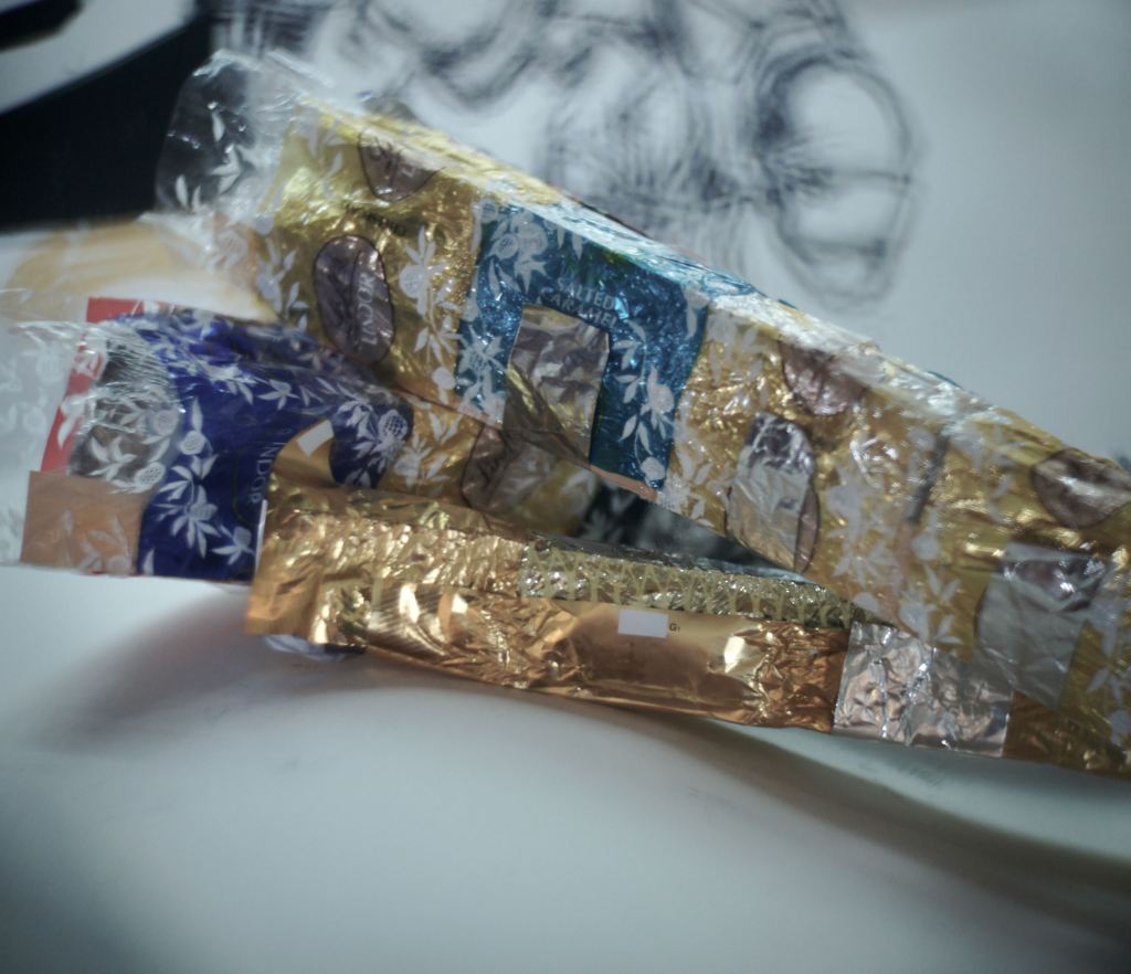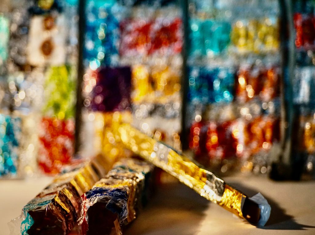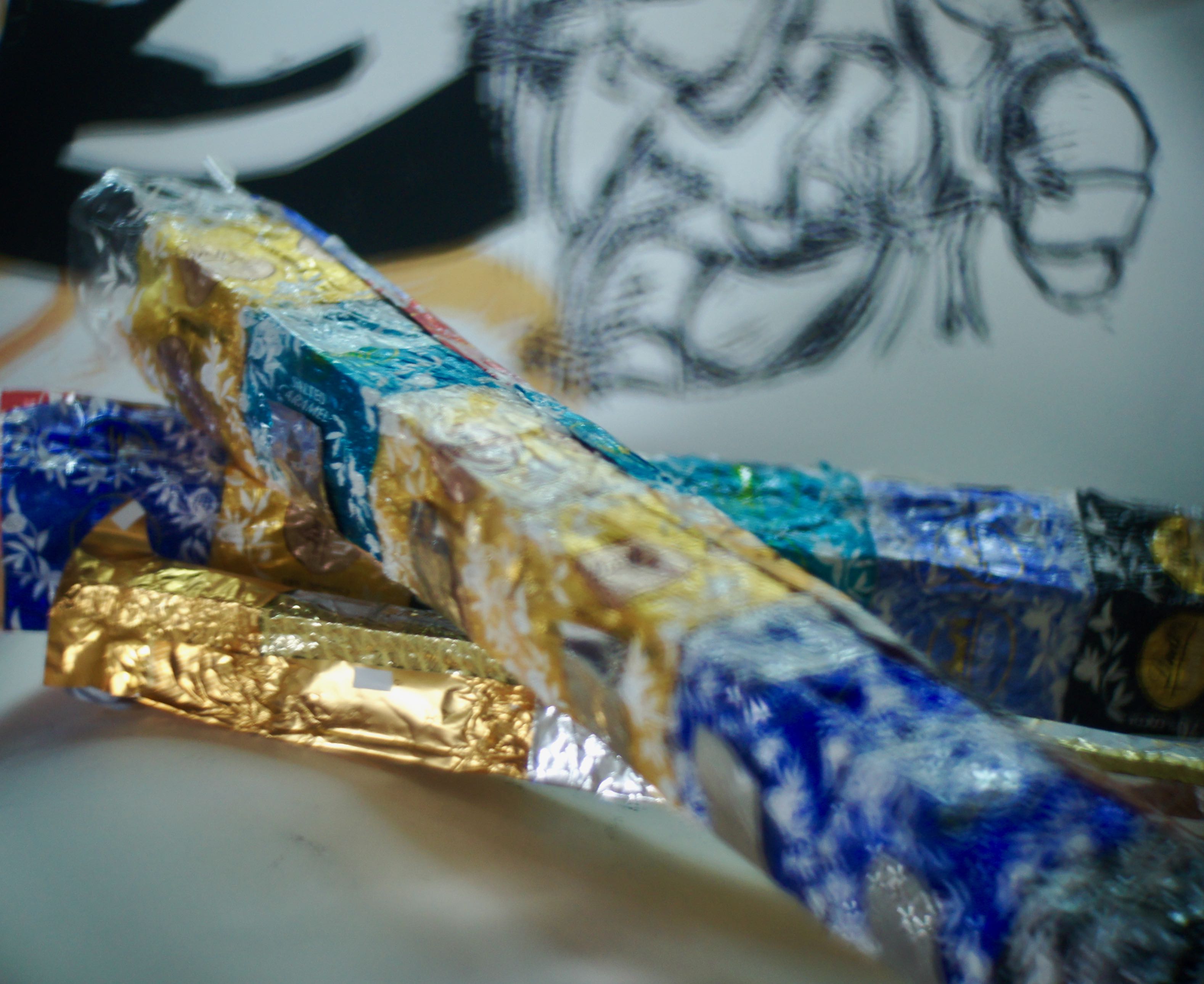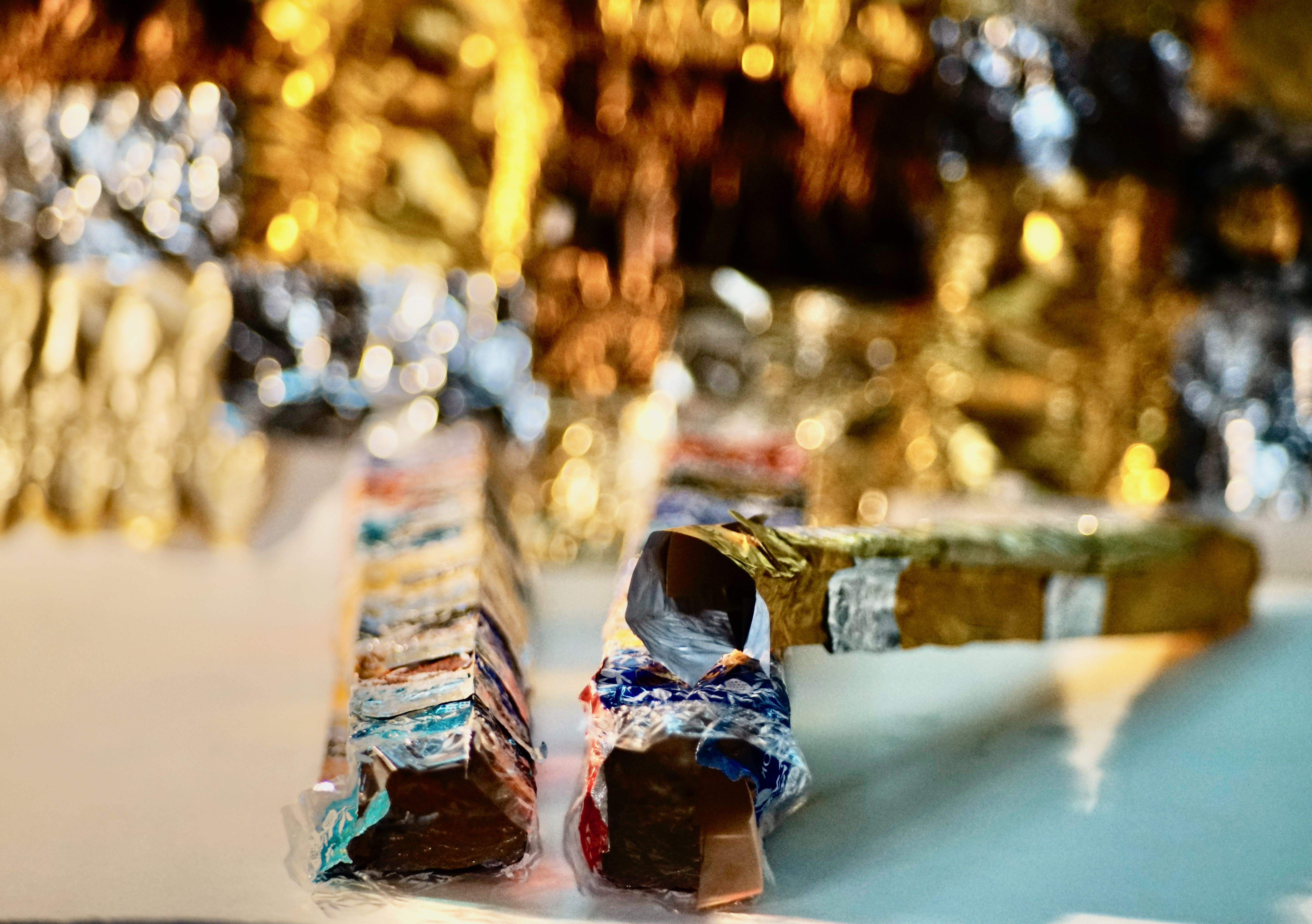 Drei farbige Stäbe, die für eine positive Sicht auf das Leben stehen. Es sind besondere Objekte, erzeugt aus Bonbonpapier und dem Bewusstsein, das aufgeben keine Option ist. Es sind Experimente, und ihre Präsentation arbeitet mit Schaerfe/ Unschärfe und einem Altglasobjektiv, das der Löwe speziell für Jürgen gebaut hat. Dank!